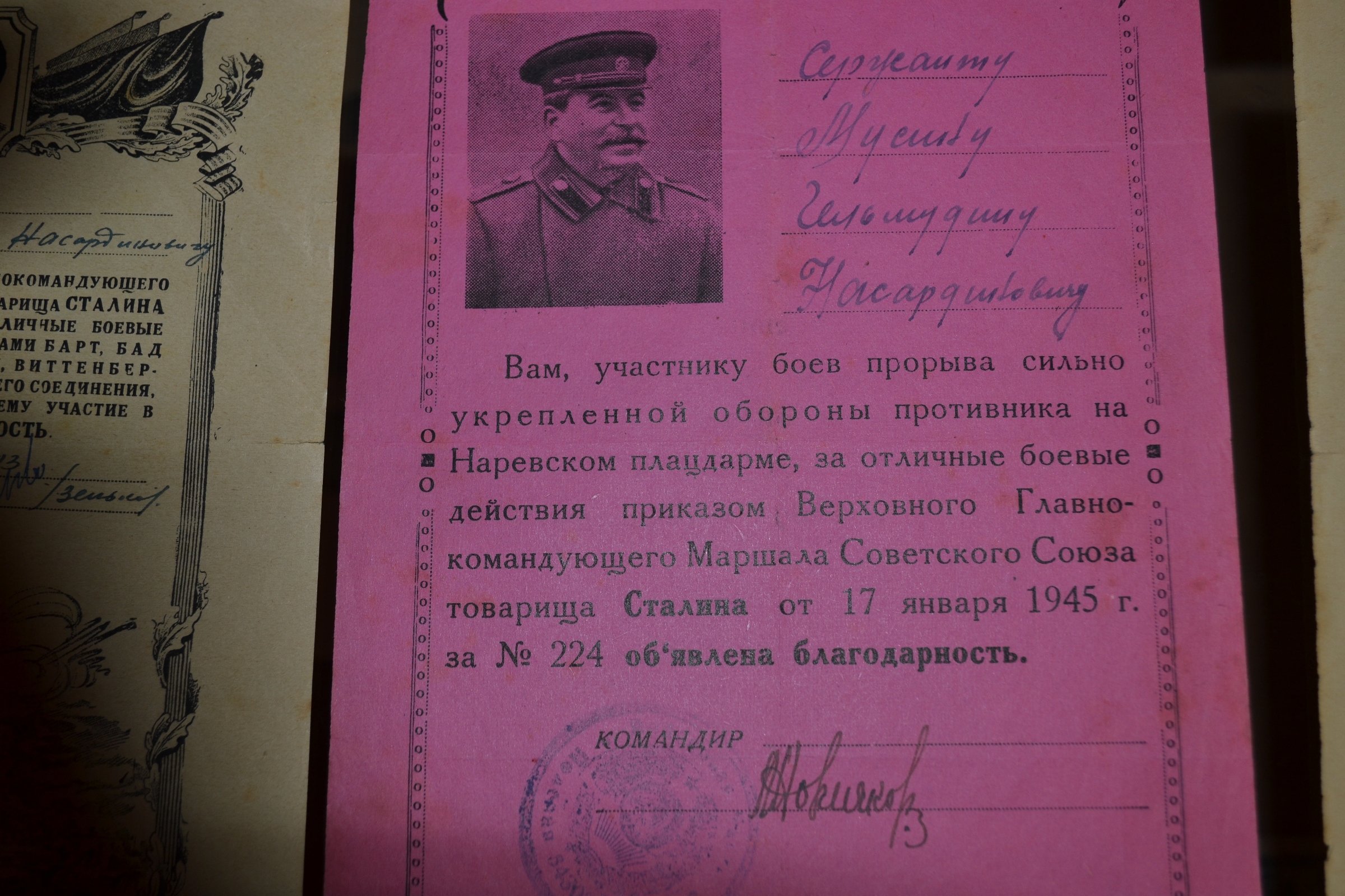 В фондах музея имеется всего 382 ед. хр. подлинных экспонатов на тему ВОВ. С 70- летием Великой Победы фонды музея пополнилась еще на 19 экспонатов. Среди этих экспонатов есть поздравительное письмо президента Российской Федерации В.Путина с 69-ой годовщиной Великой Победы ветерана войны Сахапова Жамиля Якуповича; благодарность «За отличные боевые действия» Мусину Г.Н. Приказом Верховного главнокомандующего Маршала СССР тов. Сталина от 26.04.1945 г.