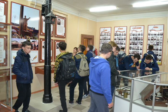 Сотрудники музея провели для старшеклассников экскурсию по залу боевой славы, где ознакомили ребят с биографиями земляков - Героев Советского Союза, фронтовиков. Будущие защитники Родины с интересом рассматривали личные вещи участников войны, трофеи, привезенные из Германии, и другие предметы экспозиции.