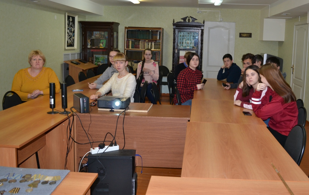 19 февраля 2019 г в Музее родного края им. В.И. Абрамова прошло комплексное мероприятие для учащихся 9 кл. Ромодановской школы на тему "Алексеевские авиаторы". В начале ребятам было предложено ознакомиться с временной выставкой "Афганский альбом" к 30-летию вывода Советских войск из ДРА. Затем занятие продолжилось в "классной" комнате. Ромодановцы вкратце узнали о структуре военно-воздушных сил и основных типах самолётов ВВС РККА периода Великой Отечественной войны, а также о фронтовых биографиях некоторых алексеевцев, принимавших участие в боях по защите Родины, находясь на службе в военной авиации. Среди них 4 уроженца села Ромодан: Г. Горячкин, А. Медведкин, А. Плотников и Л. Рейно.