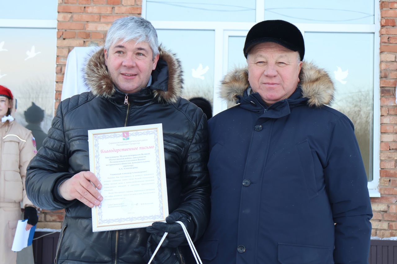 Александр Александров в своей речи поблагодарил жителей Александровки за сохранение памяти о своих земляках, а также за активность в волонтерской поддержке участников СВО по защите мирного населения Донбасса. Глава района Фарит Хуснуллин пожелал победы нашим военнослужащим, достойно защищающим нашу страну и вручил благодарственные письма волонтерам села, которые первыми откликнулись на призыв шить толстовки для бойцов.