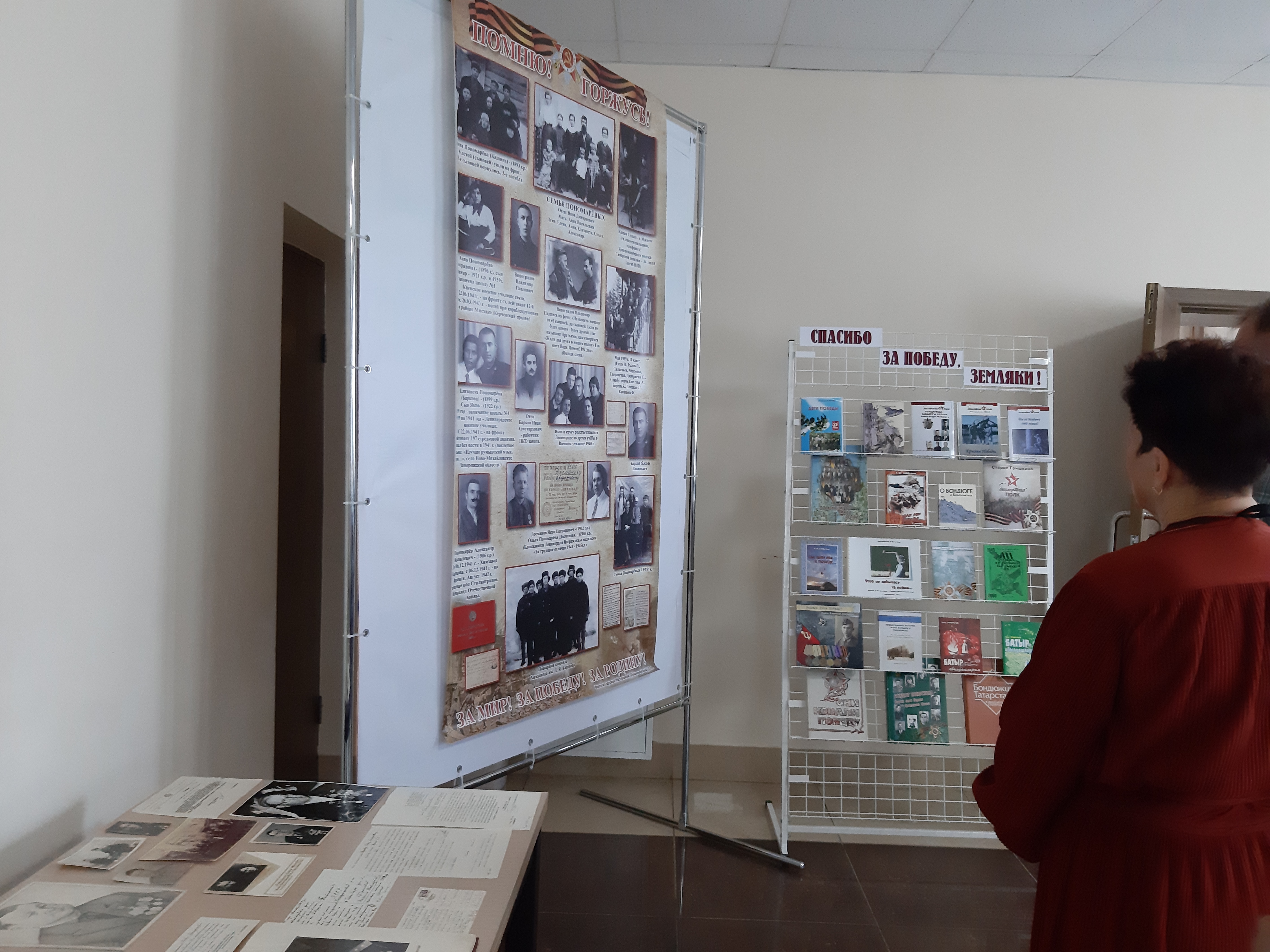 Сотрудники музея подготовили выставку подлинных документов и фото героя Советского Союза Павла Фролова и генерал-лейтенанта Василия Буркова, книг о земляках-фронтовиках. Хранитель фондов О.Смолькова выступила с презентацией Менделеевского корпункта Виртуального музея Великой Отечественной войны.