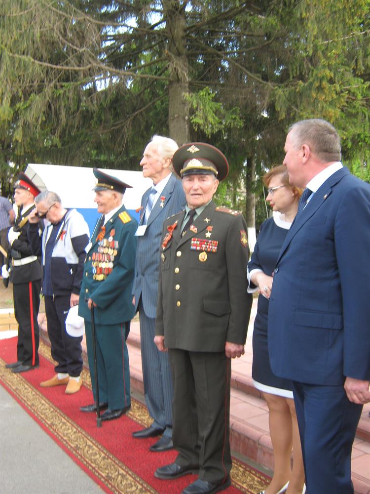 В 15 часов мы пристали к пристани города Тетюши. Оказывается статус уездного города он получил от Екатерины II. О чем очень ярко и красиво рассказали в театрализованной встрече на берегу. Потом мы сели по своим автобусам. Какая крутая гора на берегу! На самый верх ведет лестница в 320 ступенек, самые отважные на обратном пути спустятся по ней. А нас уже ждут ветераны из Тетюшей, они собрались возле монумента не вернувшимся с войны землякам. Наши ветераны приветствуют их и занимают приготовленные для них стулья.