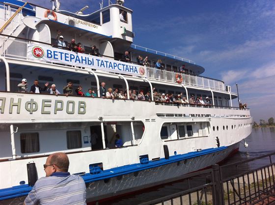 Мы плывем в Казань. Ежедневные шашечно-шахматные турниры, психологические тренинги ассистента кафедры конфликтологии Евгении Храмовой, литературно-музыкальные композиции, подготовленные творческой группой теплохода, не оставляют ни минуты свободного времени. Идет подготовка к гала-концерту, вечера танцев. Продолжаются встречи с участниками круиза. На самой верхней палубе в конференц-зале перед участниками круиза выступают Герои Социалистического труда – их трое на нашем рейсе. Или дети войны и труженики тыла вспоминают как в 15 лет вставали к станкам и убирали колоски на колхозном поле.