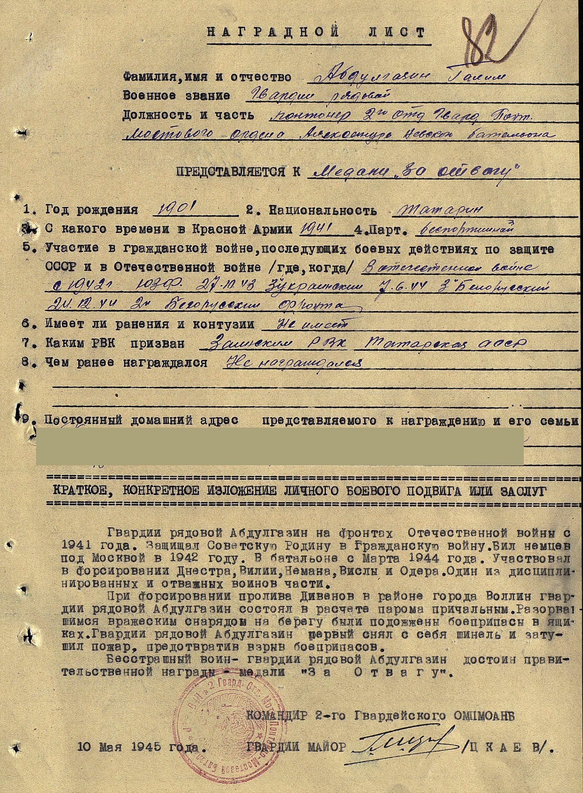 Наградной лист времен ВОВ на Абдулгазина Галима Корпункт: Заинский Опубликовано 18 сентября, 2015 - 15:42 пользователем Долгова Светлан...