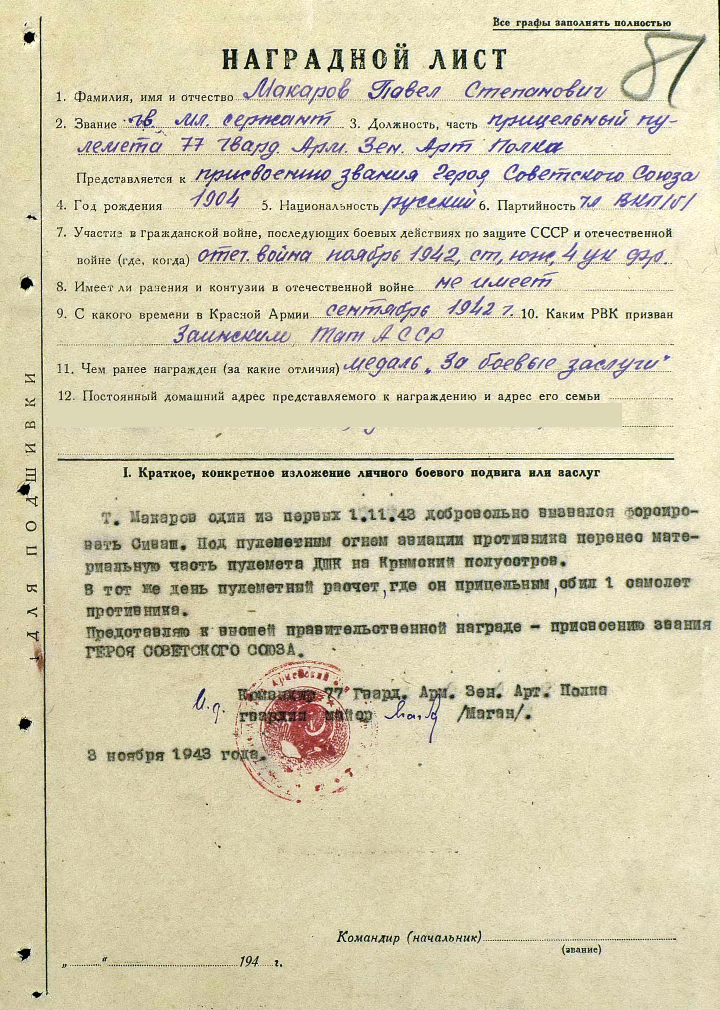 Наградные лист времен ВОВ на Макарова П.С. Корпункт: Заинский Опубликовано 17 сентября, 2015 - 13:38 пользователем Долгова Светлан...