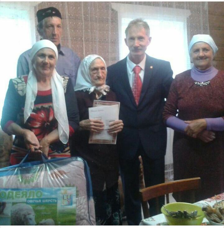 Фахретдинова Минзифа Хазиахметовна из с.Адаево Большесардыкского сельского поселения Кукморского муниципального района отметила свой 95 - летний юбилей. Именинницу поздрвавил начальник управления культуры Кукморского муниципального района Нуриев Р.Б.