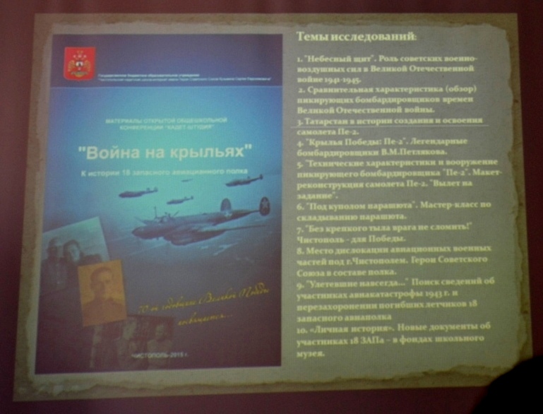 Скучаева Светлана Анатольевна также презентовала свою исследовательскую работу по истории 18 запасного авиаполка.