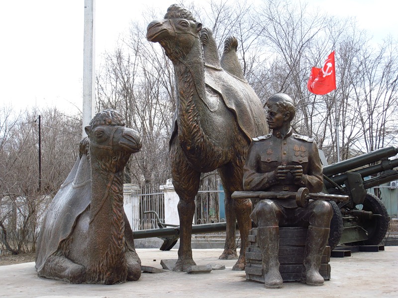 Памятник (скульпторы — В. Жуков, В. Маринин и П. Солодков, 2010 год, Ахтубинск, Астраханская область) представляет собой солдата с автоматом на коленях, рядом с которым — два верблюда. Животные Мишка и Машка прославились тем, что участвовали в легендарной Сталинградской битве и дошли от Нижнего Поволжья до Берлина.
