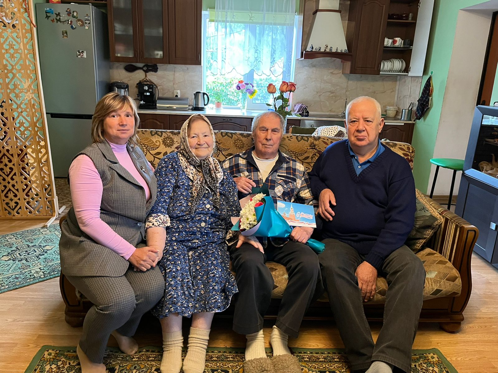 От имени Президента Российской Федерации Владимира Путина и мэра города Наиля Магдеева юбиляра поздравила заместитель главы администрации Автозаводского района Елена Альмухаметова. К поздравлениям присоединился председатель ТОС «Сосновый бор» Наиль Насыбуллин.