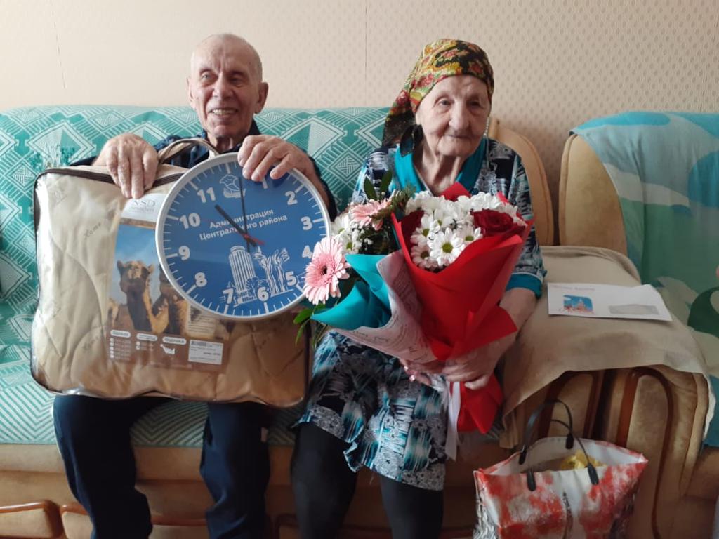 Поздравления и подарки от имени президента Российской Федерации Владимира Путина, мэра города Набережные Челны Наиля Магдеева юбиляру вручили представители администрации Центрального района, управляющей компании, ТОС «38 комплекс».