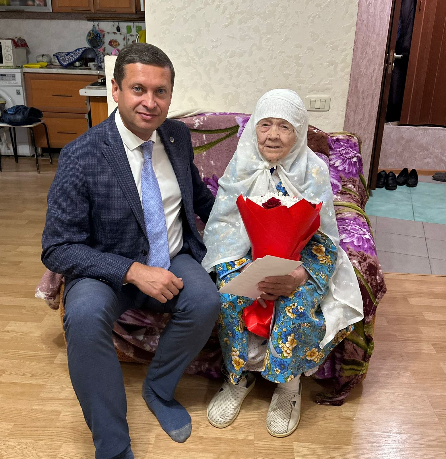 От имени президента Российской Федерации Владимира Путина, мэра города Наиля Магдеева поздравления с 95-летним юбилеем получила ветеран Великой Отечественной войны, труженик тыла Кашифа Галимзяновна Нурмухаметова.