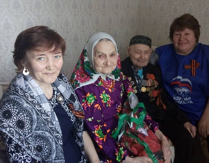 Так, 3 мая руководитель исполкома местного отделения партии Зульфия Бикбова и специалист Екатерина Белоглазова вместе с заместителем секретаря Акбуринского первичного отделения Гульчачак Залалутдиновой посетили на дому фронтовика Великой Отечественной войны из деревни Сульчебаш Насибуллу Шайдулловича Шарифуллина с подарочным пакетом.