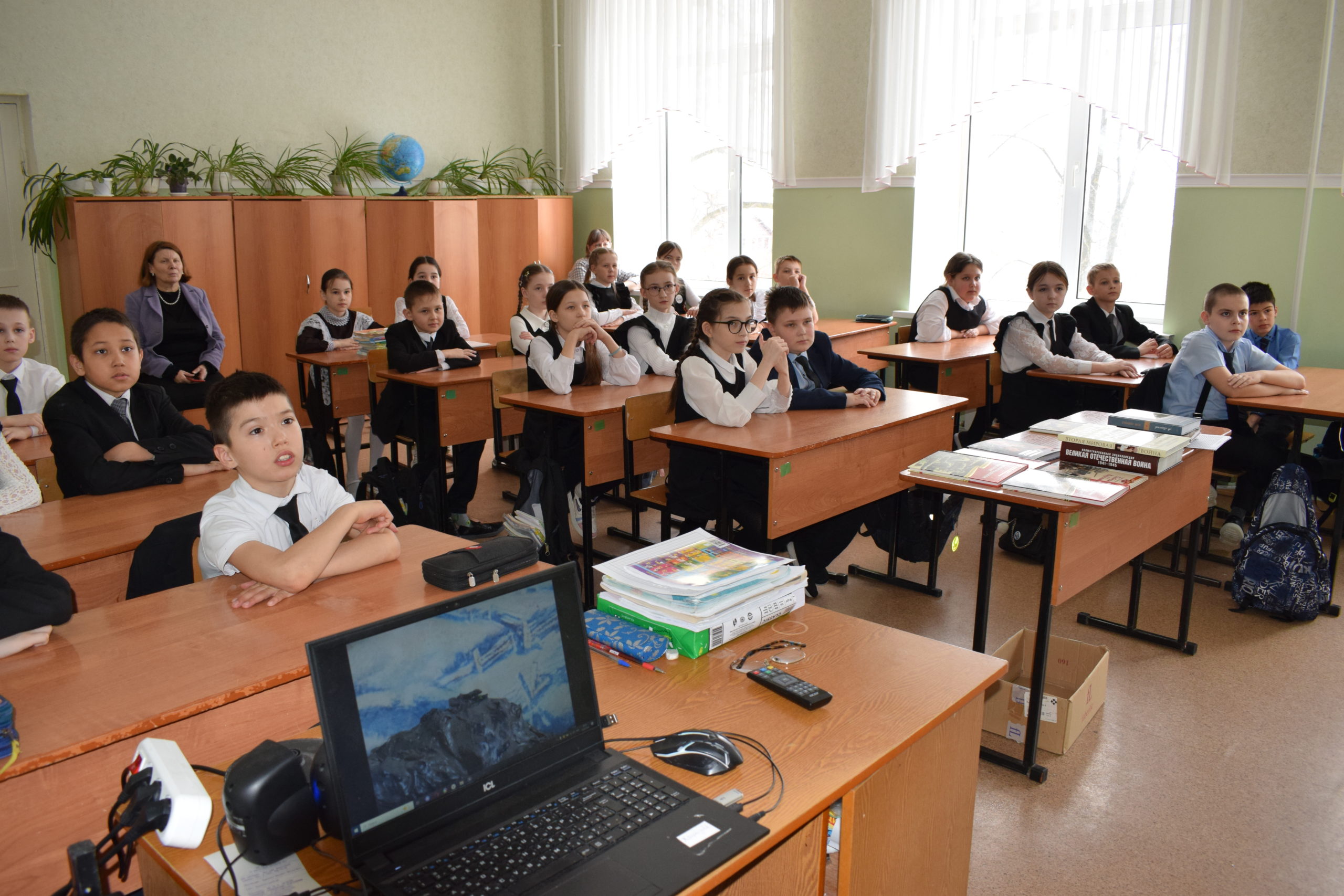 Сотрудники центральной детской библиотеки провели обзор новинок книжного мира для учащихся 4 класса школы №4. Вниманию читателей были предложены следующие книги «Детям о Великой Отечественной войне», «Военное детство», «Поклон победителям», «Школьная библиотека». Вниманию гимназистов была предложена литература о детях войны, из которой они узнали, как вчерашние школьники, отложив недочитанные книжки и школьные учебники, взяли в руки винтовки и гранаты, стали сынами полков и партизанскими разведчиками.Рассказывая о книгах, библиотекари познакомили детей с биографиями авторов, а также с кратким содержанием произведения.