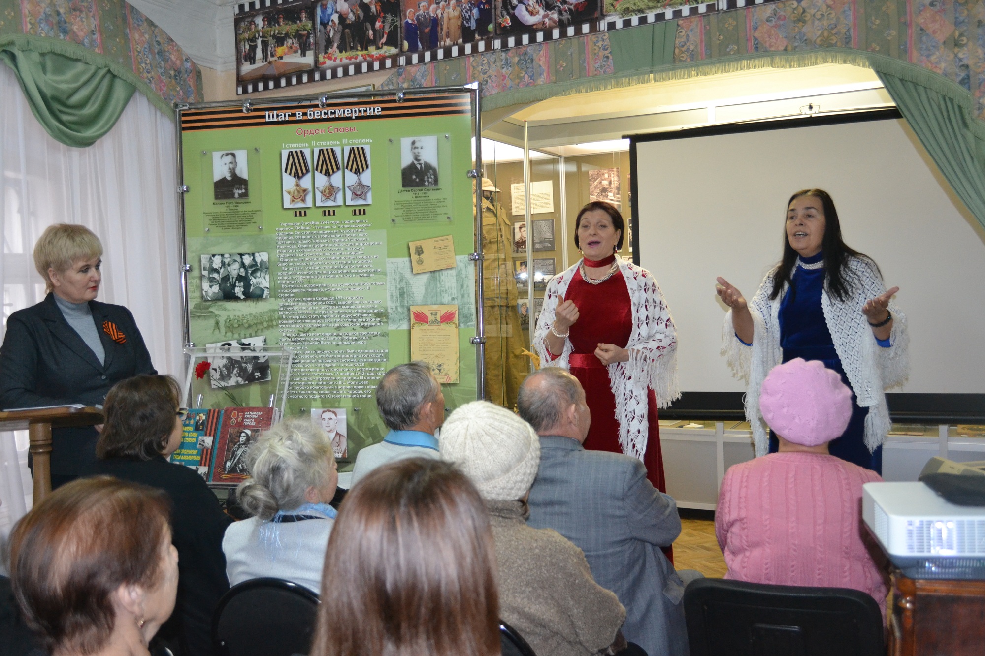 О Николае Ивановиче Зотове, не только как о храбром воине, но и неординарной личности, отличном муже, любящем отце, дедушке и прадедушке, участники мероприятия узнали из воспоминаний его дочери Евгении Николаевны. Гостям была представлена мультимедийная презентация боевых страниц из жизни Николая Зотова. У присутствующих наворачивались слезы, когда звучали песни военных лет в исполнении Евгении Николаевны Старшининой, Веры Владимировны и Александра Филипповича Скурихиных. Взяли за душу стихи Старшинина Юрия Терентьевича, прочитанные автором. Музыкальным фоном всей встречи стали произведения внука Кавалера орденов Славы Даниила Старшинина.