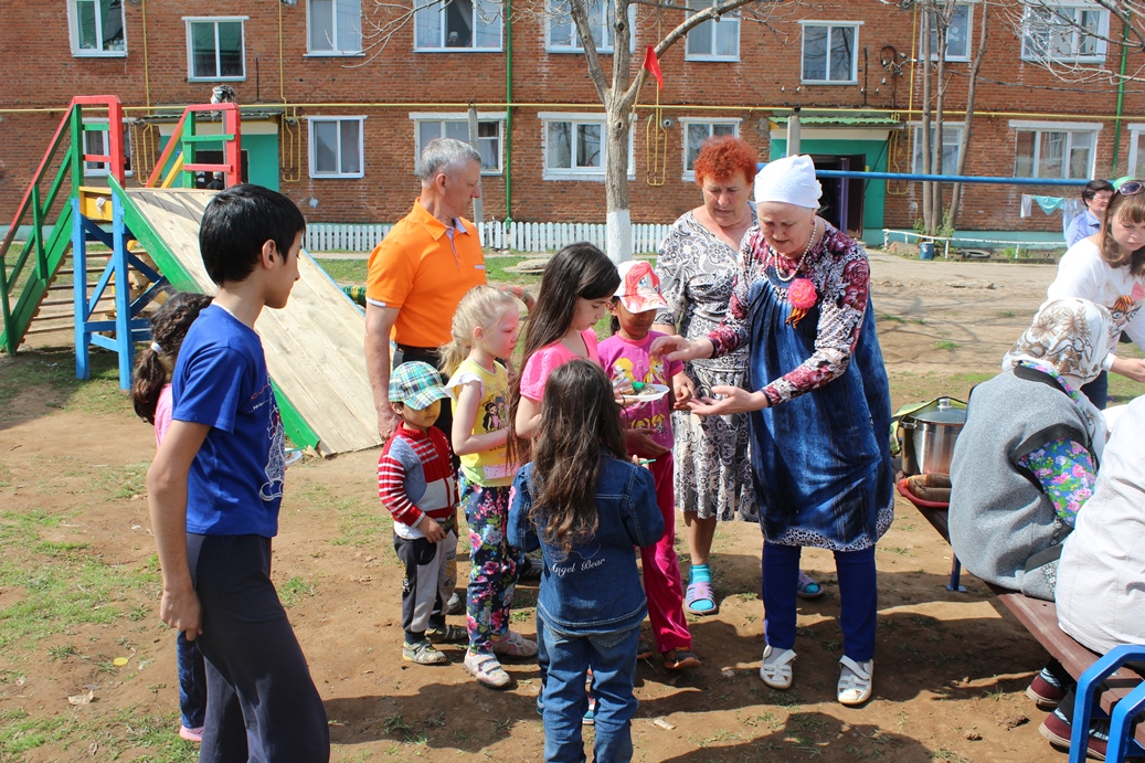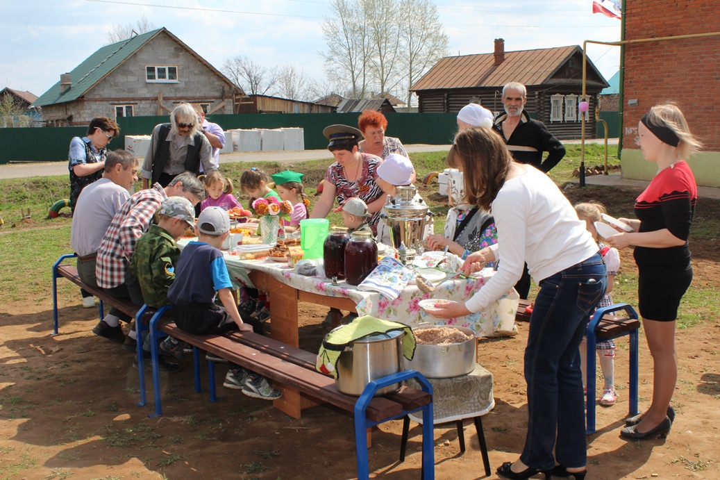 В майские праздники активисты ТОС «Кировское» организовали «Солдатскую кашу» в рамках празднования 70-летия Великой Победы. На мероприятии присутствовали и поздравили присутствующих с наступающим праздником руководитель исполкома Андрей Авдеев и руководитель исполкома МО «город Агрыз» Роман Альчиков. Праздничная музыка, военные песни, стол, полный угощениями, детский смех, веселое настроение - вот атмосфера настоящей полевой кухни. Многие горожане подходили лишь из любопытства: «Что же это за каша такая, фронтовая»? А уходили, записав «рецептик» на память. «Почему бы нам тоже не организовывать такие праздники, это - огромная площадка для общения и знакомства. Будем брать пример и обязательно примем такой опыт», - говорили гости из улиц Чайковского, М. Горького, которые пришли на такой праздник впервые.