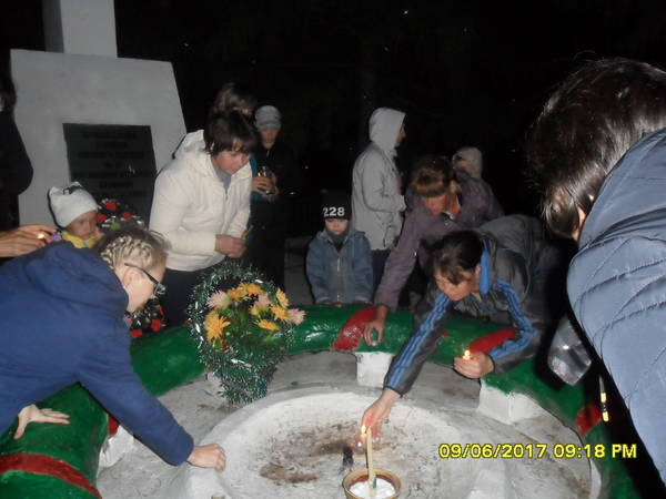Патриотическая акция «Свеча памяти» прошла вчера вечером и в поселениях района: Никольском, Кураловском, Аграмаковском. Жители собрались на небольшой митинг. Минутой молчания под звуки метронома собравшиеся почтили память погибших. Десятки свечей, символизирующие скорбь, единение и солидарность, в этот вечер мерцали во имя тех, кто отдал свои жизни за мир и счастье на земле.