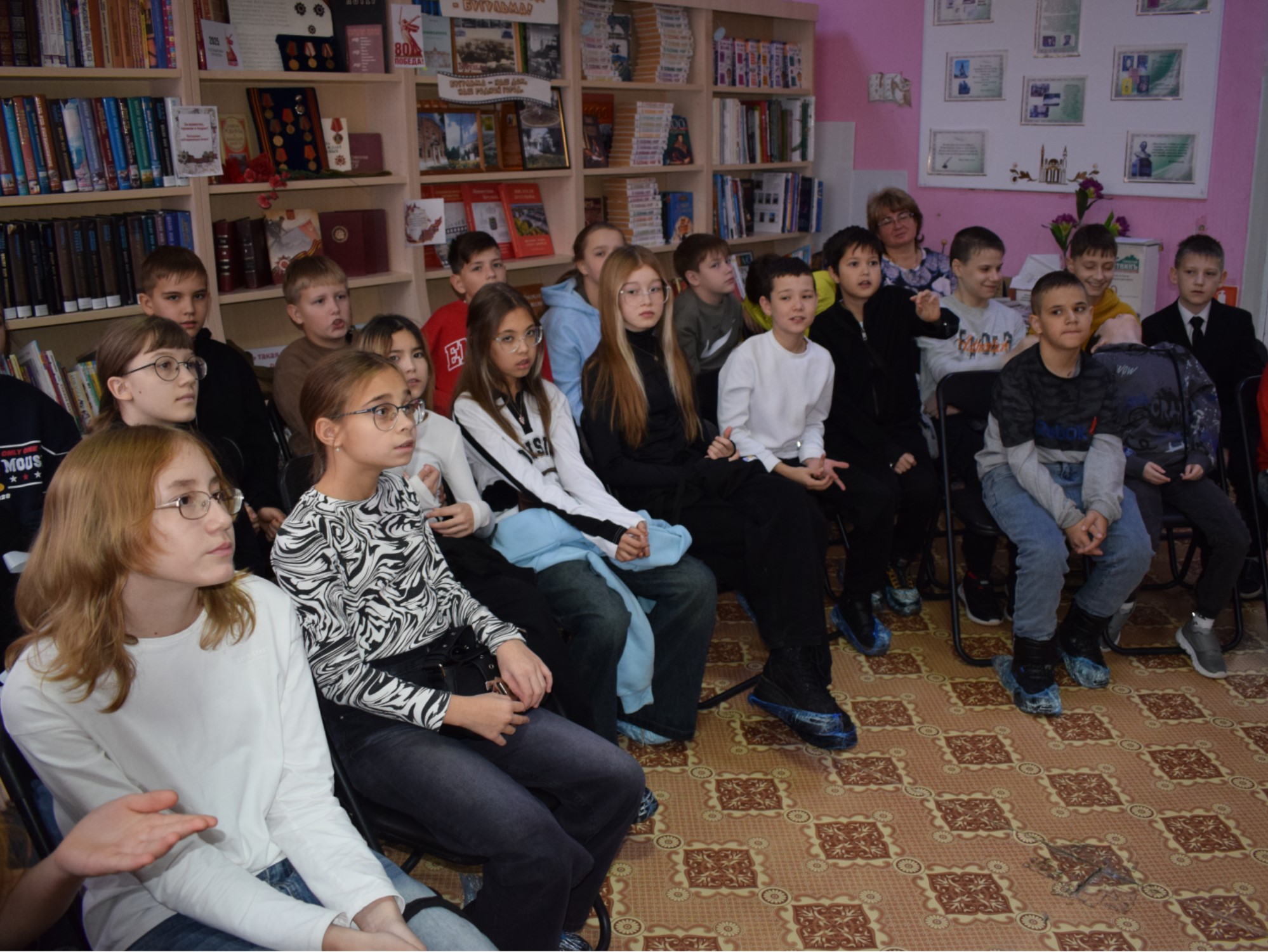 Сотрудники центральной детской библиотеки провели для учащихся пятых классов средней школы № 3 патриотический час, на котором презентовали серию книг: «Детям о Великой Отечественной войне», «Военное детство», «Поклон победителям», «Школьная библиотека». Читателям было рассказано о том, какой ценой была завоевана победа. Они узнали о мужественных защитниках Бреста, Сталинграда, о жителях блокадного Ленинграда, о героях Курской дуги, о клятве панфиловцев защищать свою Родину до последней капли крови... Лицеисты задавали много вопросов, желая больше узнать о войне, о судьбе детей военного времени. Диалог получился открытым и душевным.