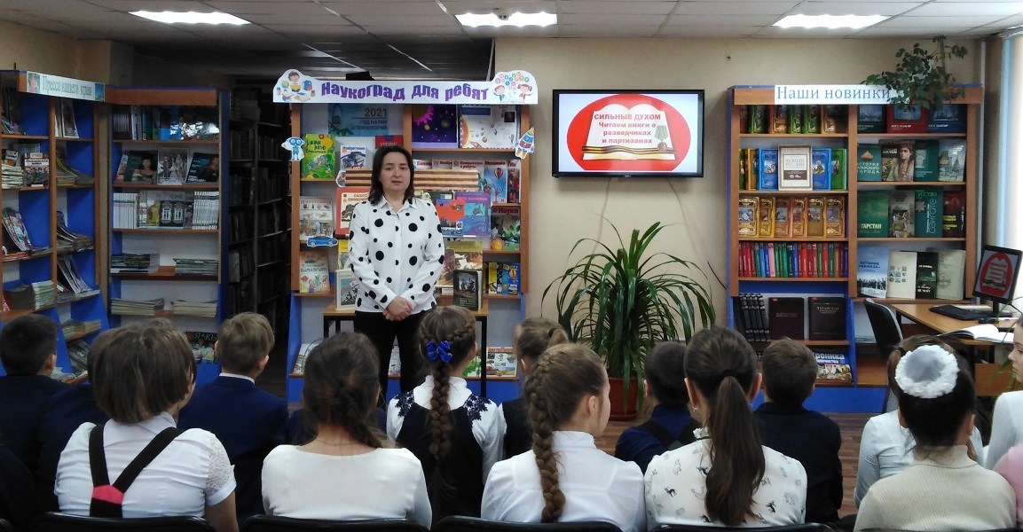 В рамках Всероссийской акции «Сильные духом. Читаем книги о разведчиках и партизанах», посвященной подвигу советских разведчиков и партизан в годы Великой Отечественной войны в Центральной детской библиотеке прошел патриотический час «В книгах наша память».