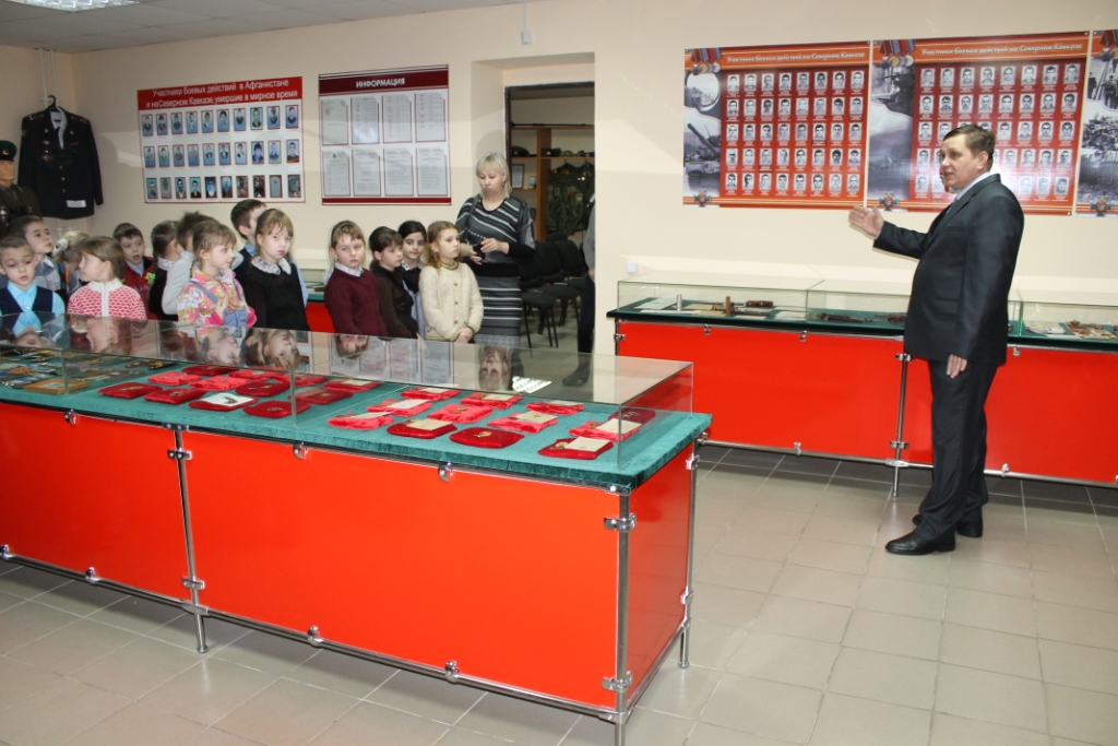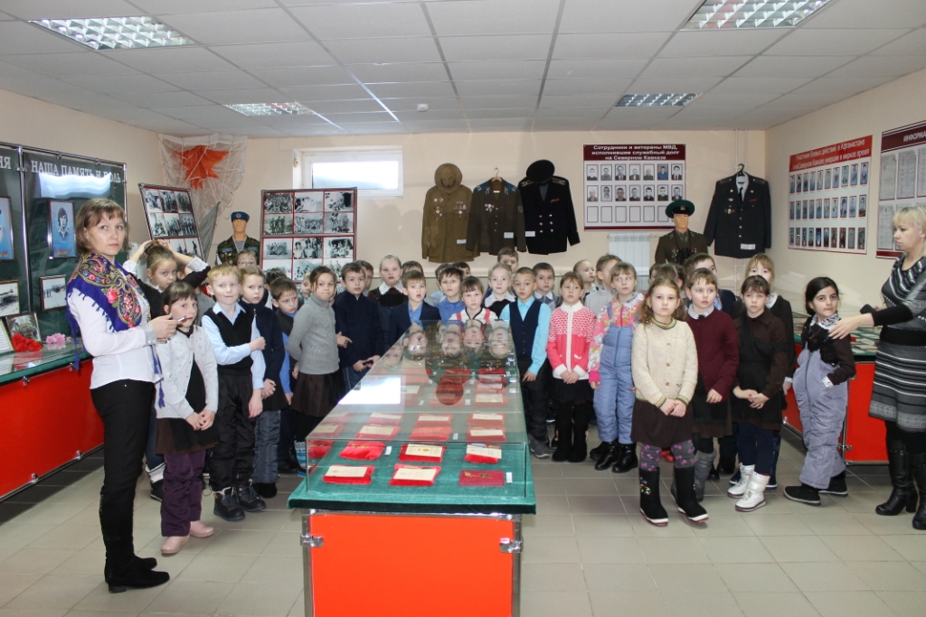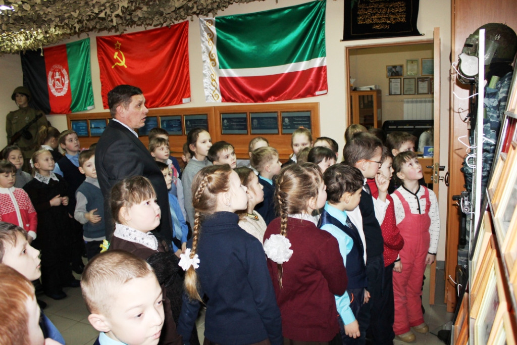 Сразу две группы первоклассников Алексеевской средней школы № 3 15 февраля 2017 г., в День памяти вывода Советских войск из Афганистана, посетили с экскурсией Музей боевой славы общества участников локальных войн. Экспозиция музея, надо отметить, не ограничивается узкой темой военных действий на территории ДРА и на Северном Кавказе, а охватывает более широкий период истории участия наших земляков в защите Отечества с дореволюционных времён до наших дней. Экскурсии в музее всегда сопровождаются показом фильмов или видеосюжетов на патриотическую тему.