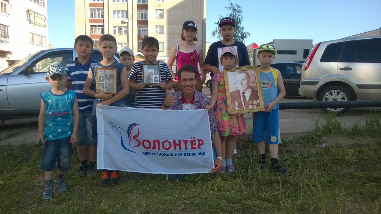 В ее рамках юным жителям одного из дворов Елабуги рассказали как тяжело было жить в эти годы. Координатор волонтерского отряда Роман Епанешников поделился воспоминаниями своих прадедов: Тихона Алексеевича Епанешникова, Ивана Ефимовича Родина, Якова Григорьевича Долгополова. Также ребятам рассказали о подвигах пионеров. "Это Саша Бородулин, Валерий Волков, Валя Зенкина, Аркадий Каманин, Вася Коробко, Володя Казначеев, Витя Хоменко, Шура Кобер, Володя Щербацевич, Зина Портнова , Валя Котик, Марат Казей, Леня Голиков и многие другие. Об их подвигах, которые они совершали примерно в таком же возрасте как и мы, должен знать каждый подросток. Все они были награждены высшими наградами СССР", - говорит Роман Епанешников.
