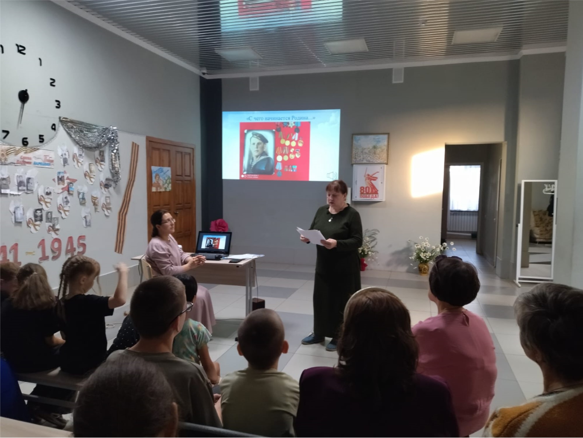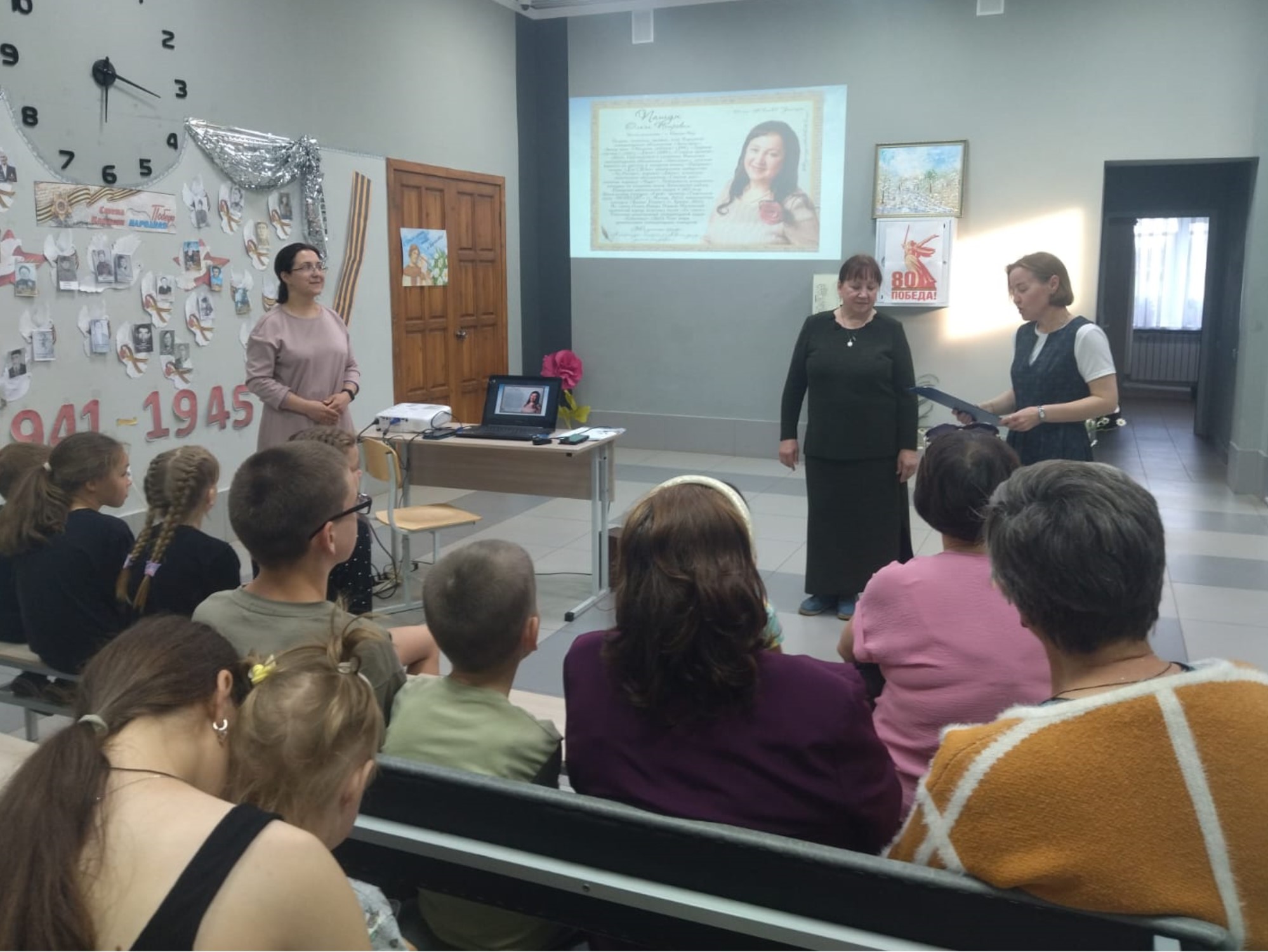 С большим вниманием присутствующие слушали рассказ Ольги Петровны о своих родителях: отец – орденоносец-фронтовик, мама – труженица тыла, работала во время Великой Отечественной войны механиком на рыболовном тральщике приписки мурманского порта. Как известно, на этом участке Северного фронта натиск фашистских войск был особенно велик. Мурманск бомбили практически ежедневно. В Баренцевом и соседних морях регулярно барражировали вражеские подводные лодки. Но наши люди выстояли и победили. Кому повезло, вернулись к мирной жизни.