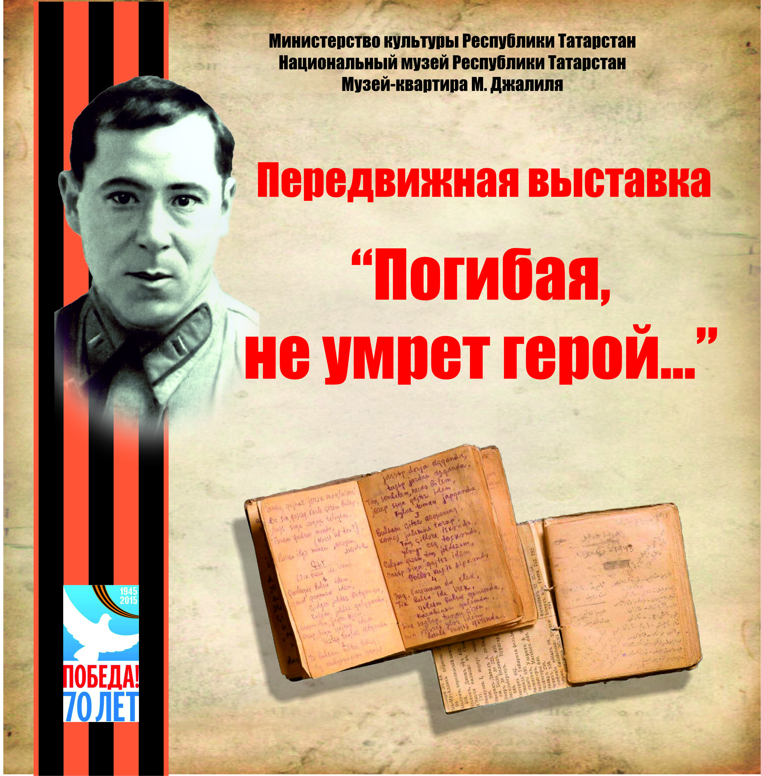 2015 год в России объявлен Годом литературы, в истории он останется ещё и как год 70-летия Великой Победы. В связи с этим Национальный музей Республики Татарстан и Музей-квартира Мусы Джалиля предлагают передвижную выставку «Погибая, не умрет герой», которая посвящена жизни и творчеству знаменитого татарского поэта, Героя Советского Союза, лауреата Ленинской премии Мусы Джалиля.