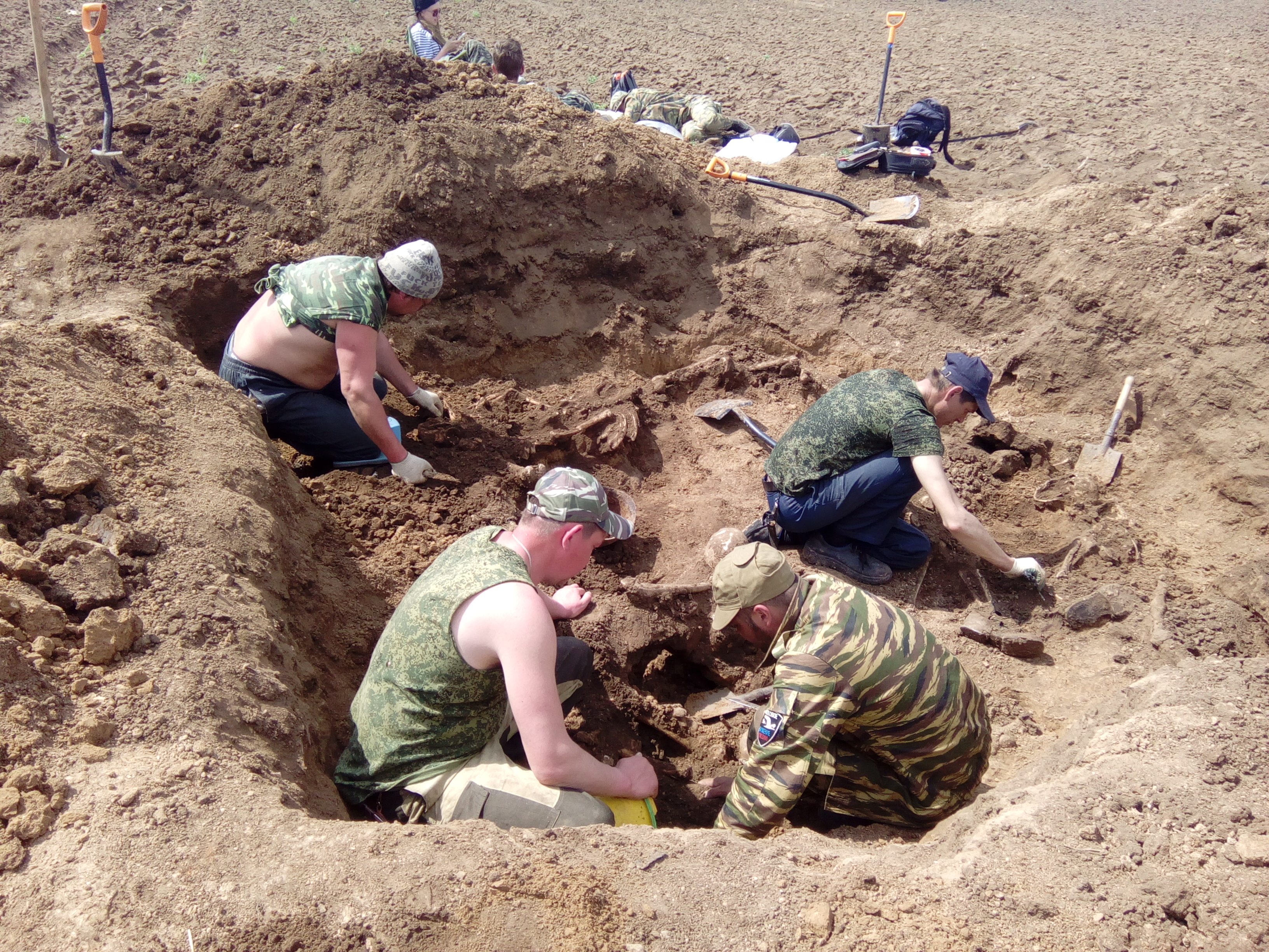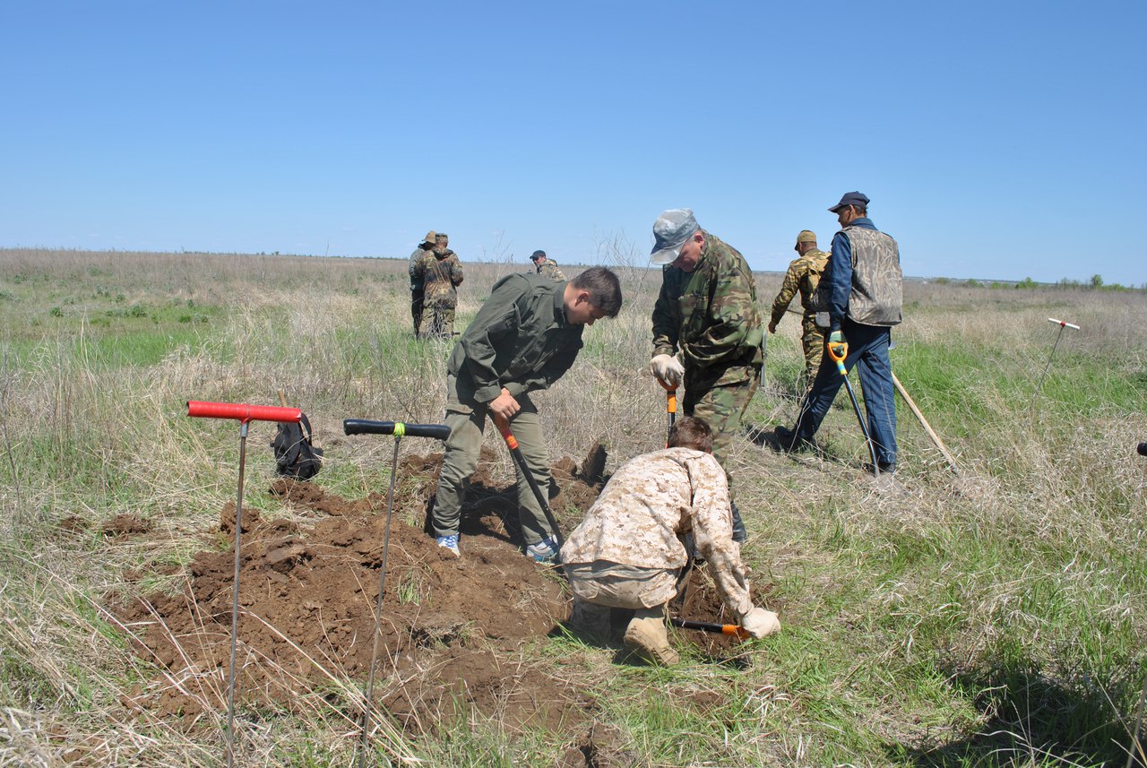 Чистопольский военно-патриотический поисковый отряд «Выстрел» и военно-исторический клуб и поисковый отряд "Звезда" из п. Алексеевское 8 мая вернулись из очередной поисковой экспедиции в Волгоградской области. Совместно с поисковым отрядом «Волга» (г. Волгоград) поисковики проводили эксгумационные работы в 3-х км западнее села Ерзовка, на серверных скатах высот 141,2 и 134,0. Здесь проходил передний край немецких войск, после того, как они вышли клином к Волге севернее Сталинграда. На этом участке сражались подразделения 120-й, 84-й, 64-й, 299-й, 231-й стрелковых дивизий 66-й армии Сталинградского (с 28 сентября 1942 г. - Донского) фронта. Противник, создав мощную систему обороны, прочно удерживался на господствующих высотах и дороге, которая проходила между ними. Задачей 66-й Армии было соединиться с частями 62-й Армией, истекавшей кровью в развалинах Сталинграда, прорвав фашистский фронт. Поисковые работы на этих рубежах ведутся уже не первый год и даже десятилетие, и каждая вахта "выдаёт" больше сотни (а то и двух) останков солдат, находящихся в так называемых санитарных захоронениях. Эти захоронения нигде не учтены и ничем не обозначены, запаханы под сельхозугодия и сейчас это частные земли фермеров, на которых гастарбайтеры выращивают помидоры, лук, морковь.