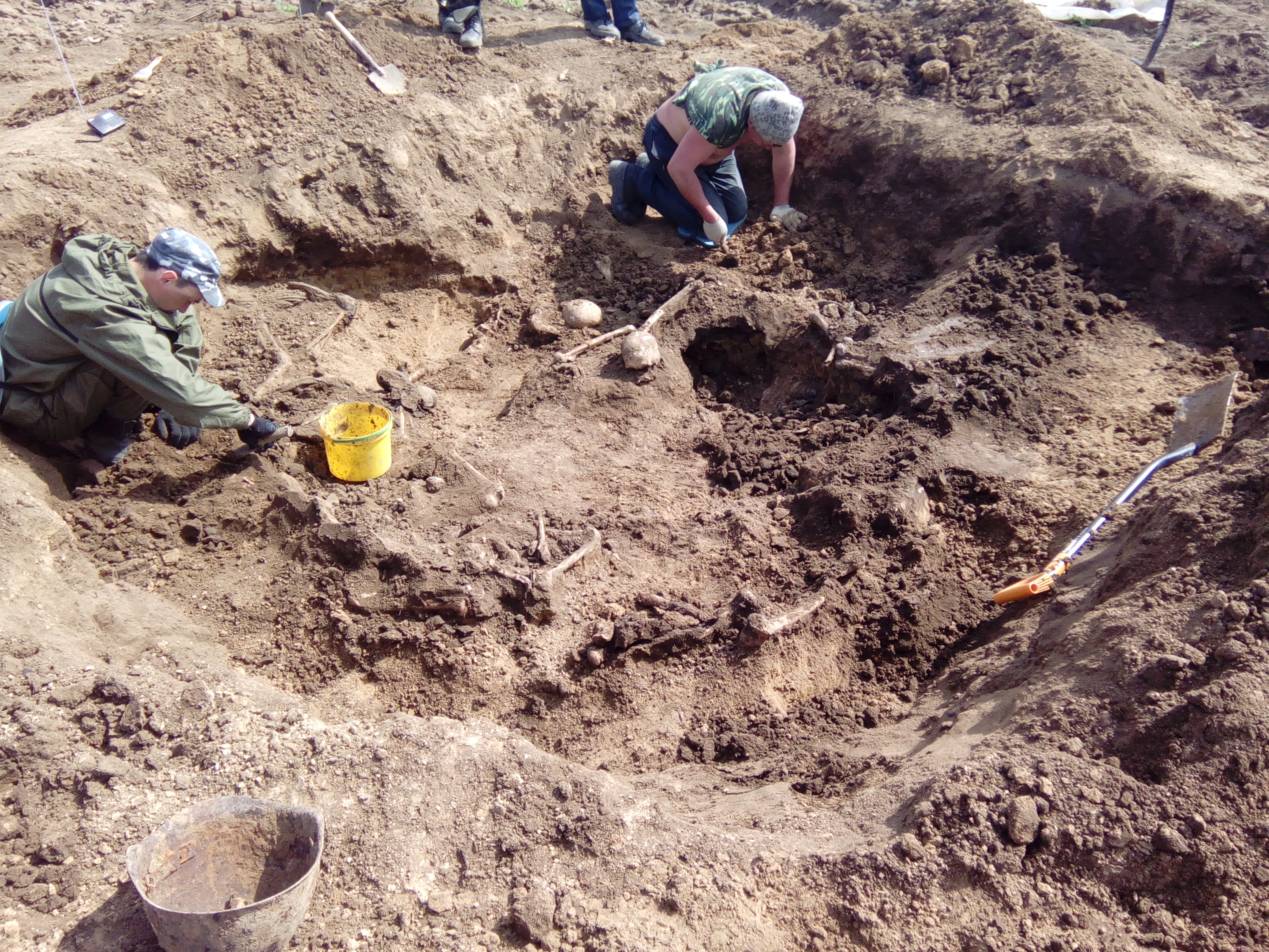 Совместными усилиями трех отрядов были подняты останки 131 солдата Красной Армии, при которых было обнаружено два медальона и личные вещи с инициалами.