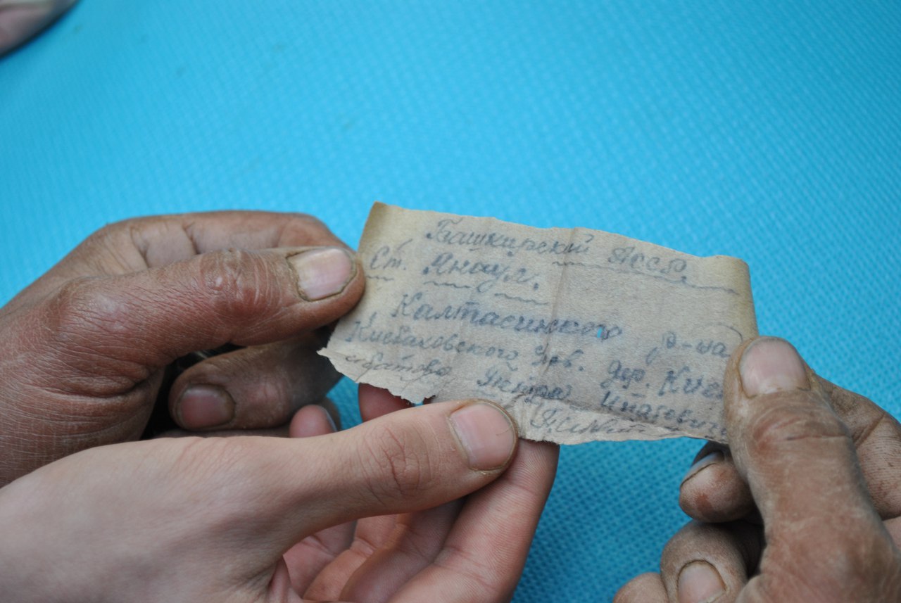 Владельцем одного медальона оказался уроженец Башкирской АССР Ибатов Петр Ибатович, 1905 г.р. Второй медальон принадлежал Урбану Леониду Осиповичу из г. Ленинграда, 1921 г.р., который с октября 1941 г. числится в базе ОБД-мемориал как пропавший без вести. Кроме того, была найдена красноармейская книжка, которая требует дополнительной экспертизы.
