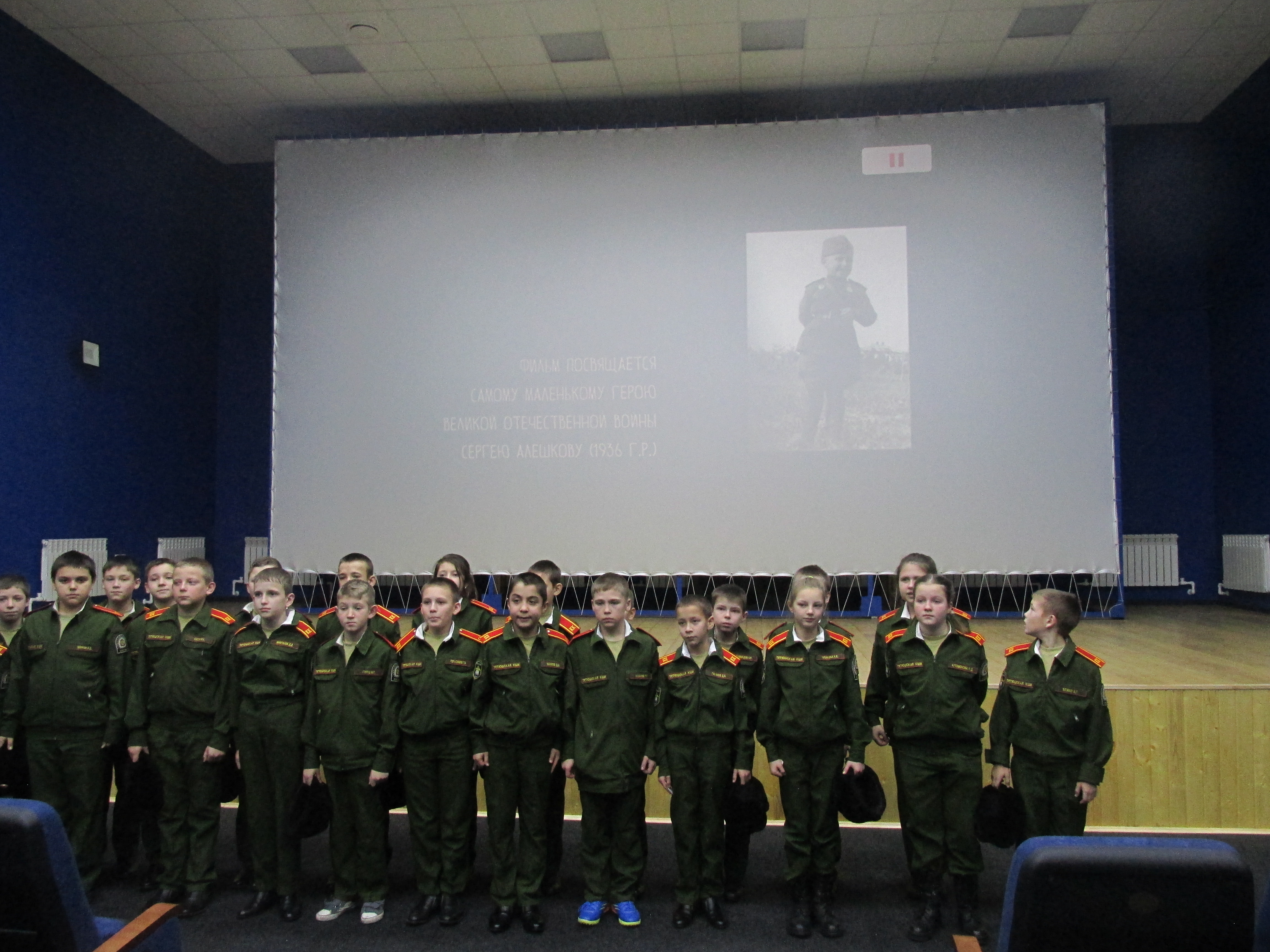 9 декабря в кинотеатре «Новый век» ко Дню Героев Отечества в целях патриотического воспитания состоялся показ художественного фильма «Солдатик», для кадетской школы - интернат. Фильм о волнующих и героических событиях, произошедших в жизни самого маленького солдата - героя Великой Отечественной Войны, шестилетнего Сережи Алешкова, который потерял всех своих родных, попал в действующую армию. С шестилетним мальчиком затеяли игру в солдатика, чтобы сохранить ему детство, а он, чтобы соответствовать этому почетному званию, стал настоящим защитником Родины.