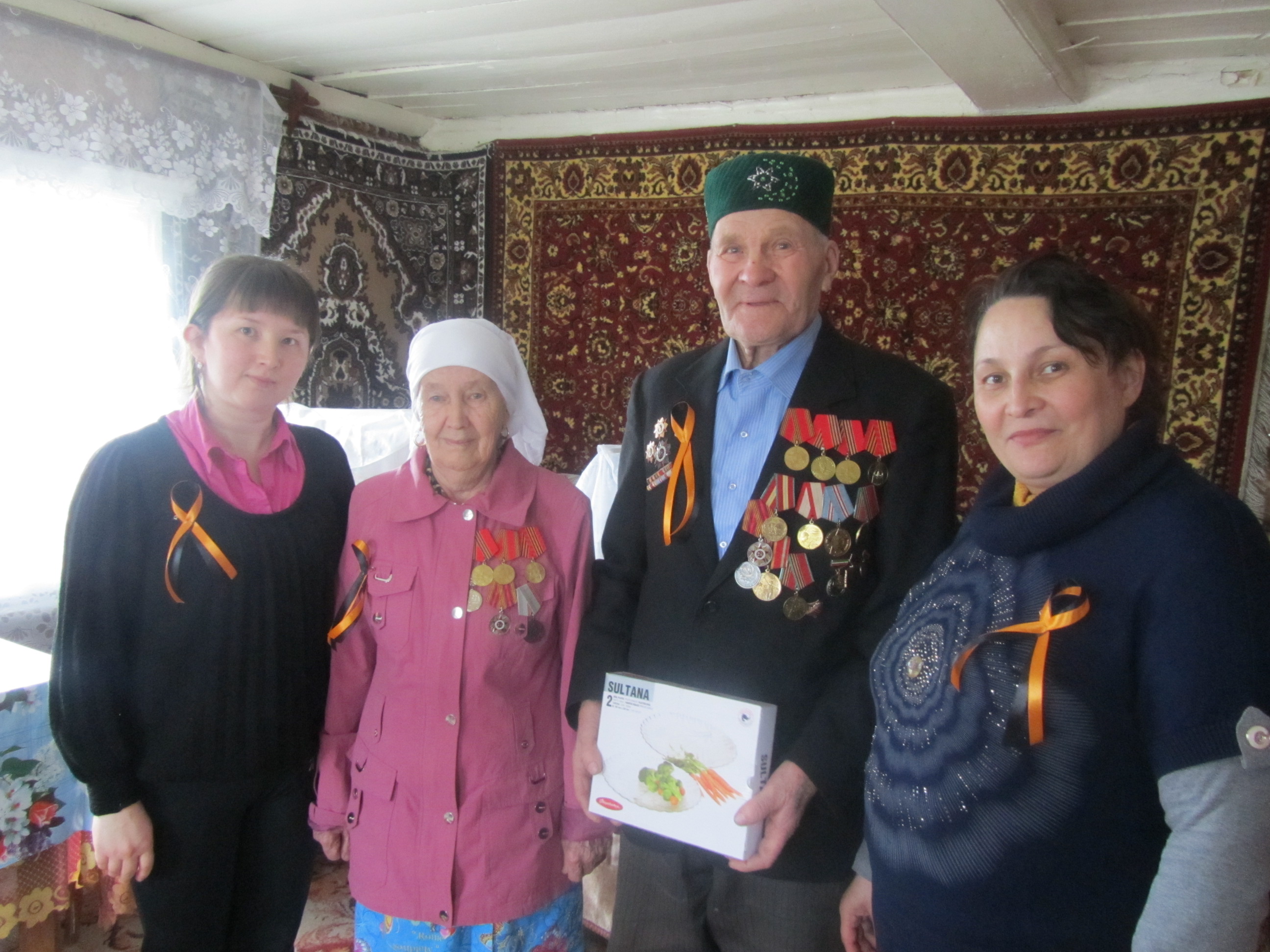 В селе Саклов-Баш по случаю приближающегося праздника, заведущая библеотекой Мифтахова Раиля, работники дома культуры Гаттарова Миляуша и Сафина Роза посетили ветерана Великой Отечественной войны Халилова Мисхата и его супругу Биктимирову Фанию.