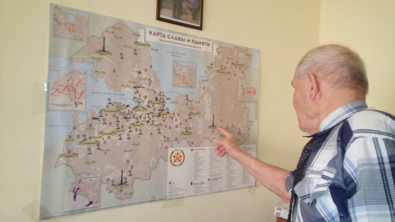 Что такое «Дорога жизни» рассказал ребятам Иван Николаевич со слезами на глазах. Показал на карте мемориал, входящий в Зелёный пояс Славы, расположенный на западном берегу Ладожского озера. Находится он на Вагановском спуске, откуда автоколонны брали курс к восточному берегу бухты Петрокрепость Ладожского озера, и куда потом возвращались, преодолев расстояние в 30 километров. Иван Николаевич поделился о своей поездке в Санкт-Петербург в 2015 году и в город Тихвин в 2016 году, показав фотографии.