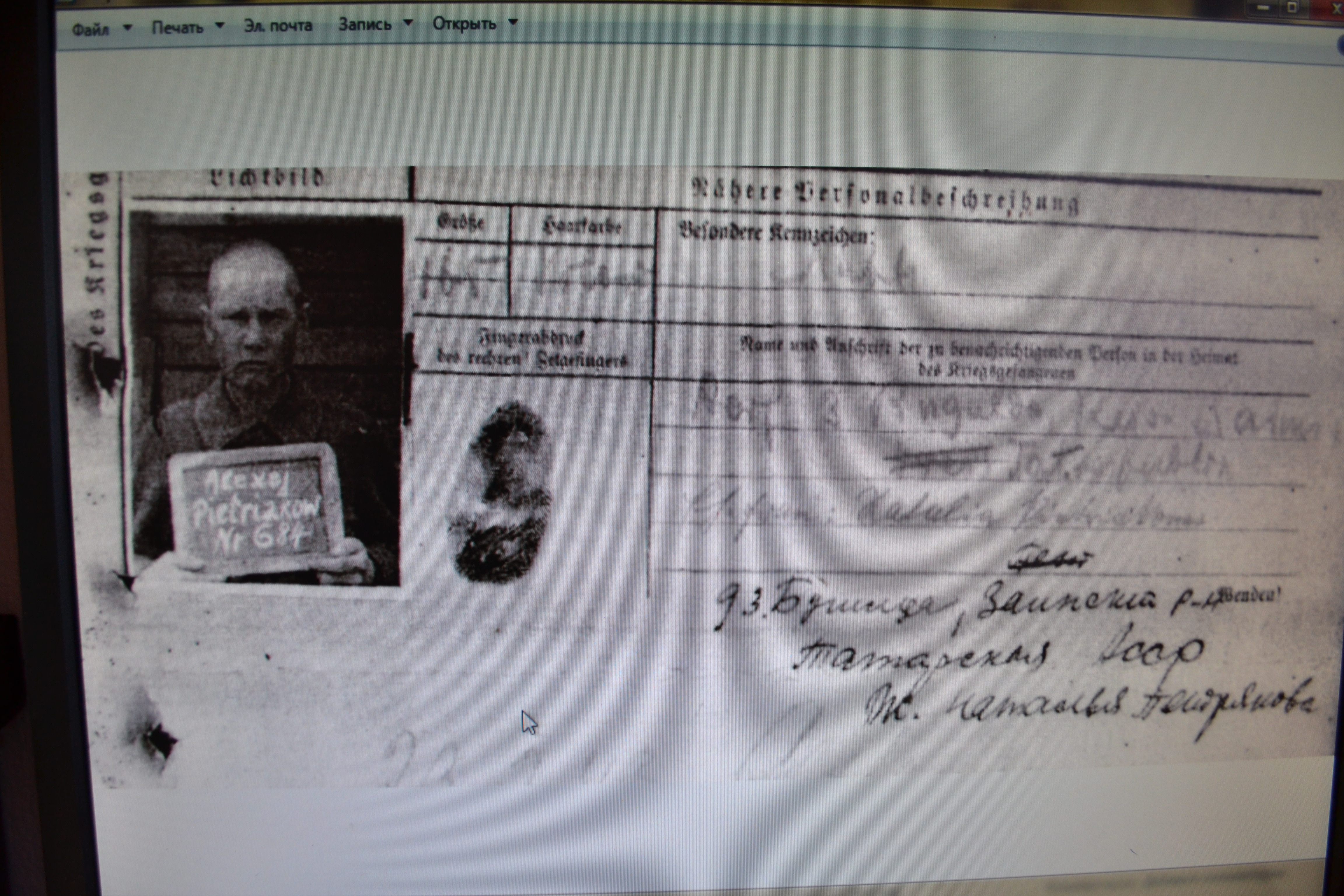 В ходе лекции, рассказывая о поисковой работе, музейщикам были переданы ксерокопии нескольких архивных документов. Так, в руки мне попала информация о военнопленном Петрякове Алексее (Васильевиче – Максимовиче), жителе деревни 3 Бугульда Заинского района. 28 летний юный паренек был мобилизован на третий день войны - 25 июня 1941 года.