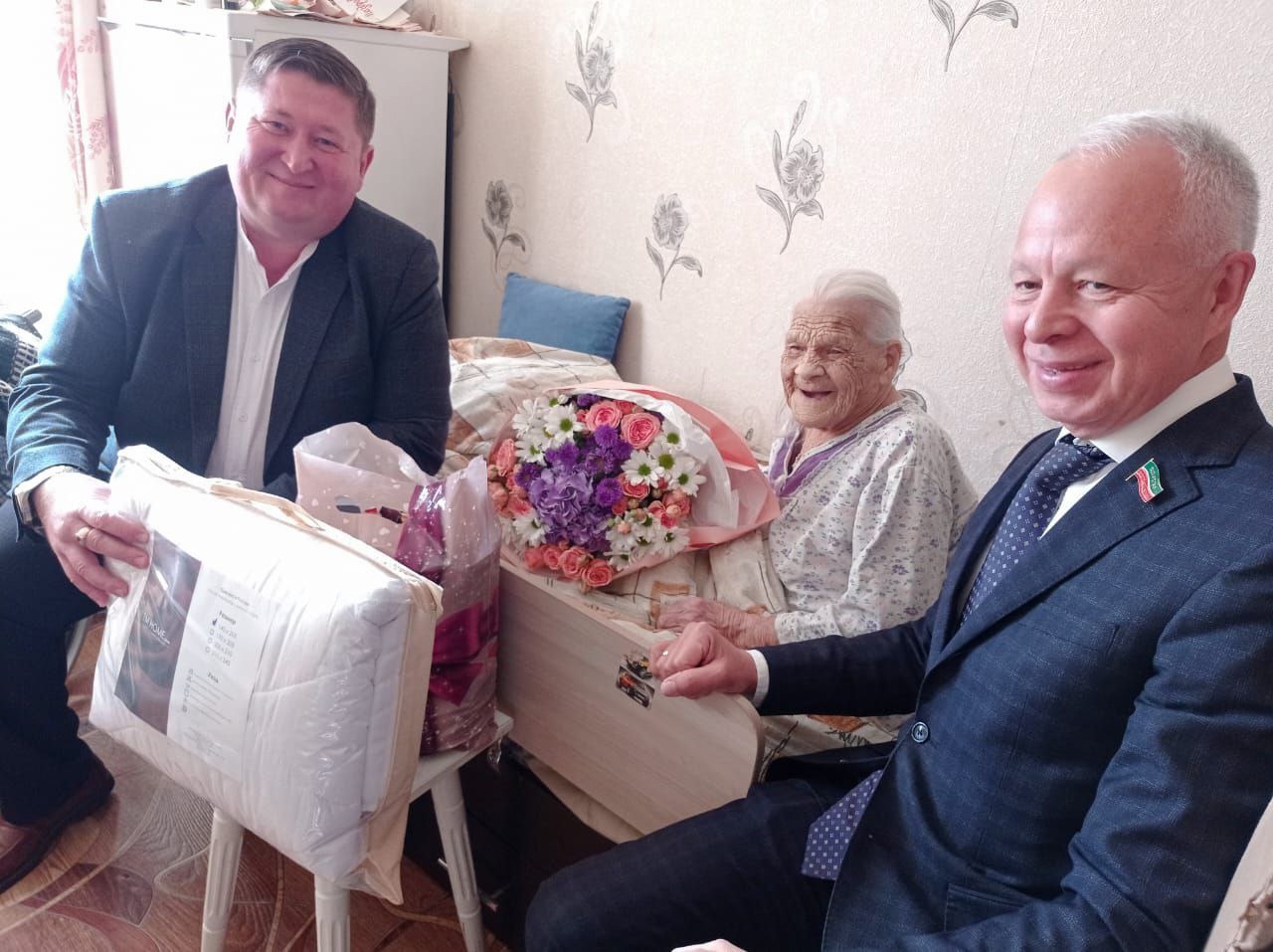 И.о. Главы администрации района Айрат Хуснуллин совместно с депутатом Государственного Совета РТ Ильдаром Шамиловым посетили ветерана, труженицу тыла, столетнего юбиляра Леонтьеву Зою Ивановну и вручили памятный подарок и букет цветов от имени Раиса Республики Татарстан, Мэра города Набережные Челны.