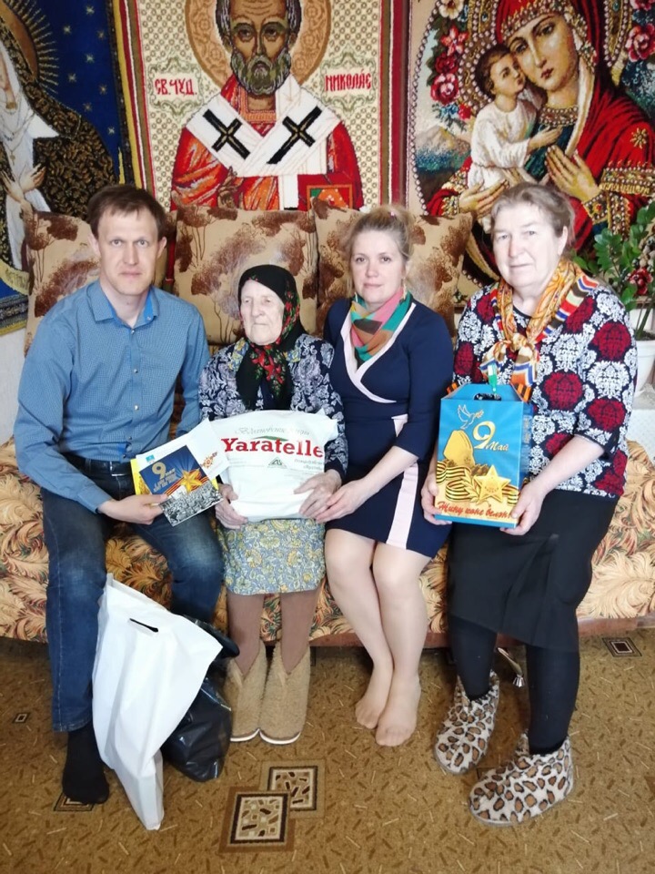 Глава Габишевского сельского поселения Рамиль Хусаинов поздравил тружениц тыла и вдов Великой Отечественной войны с 74-ой годовщиной Победы, вручил им подарки и поздравительные открытки от Президента РТ Рустама Минниханова, открытку и денежное поощрение от главы Лаишевского района Михаила Афанасьева, а также продуктовый набор и бытовую химию от птицефабрики «Яратель» и предпринимателей села.