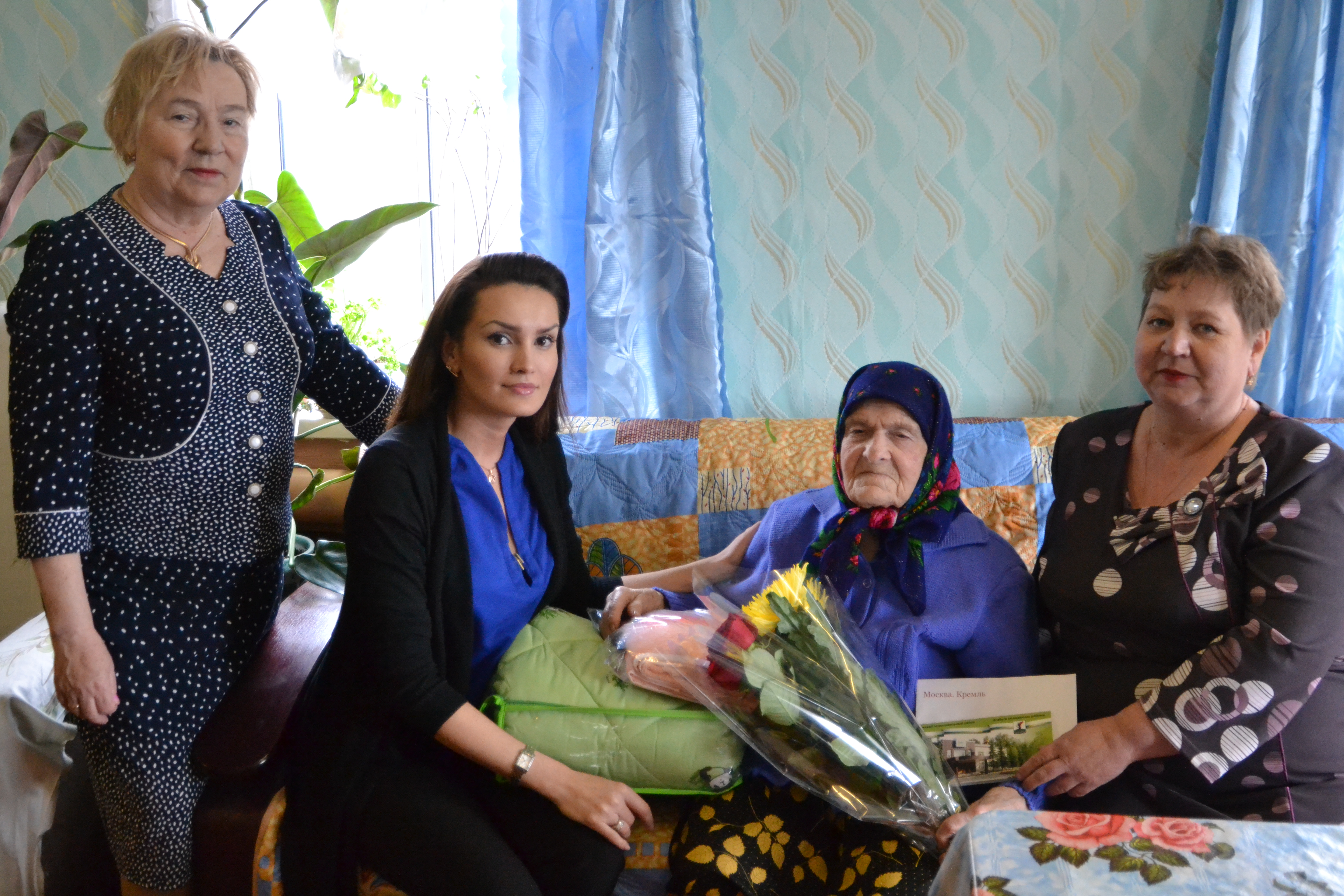 В Елабуге уже стало доброй традицией, когда руководители чествуют долгожителей нашего района, внесших в годы Великой Отечественной войны большой вклад в победу над фашистской Германией. Вот и сегодня свой 90-летний юбилей отмечает труженица тыла Александра Дмитриевна Морковкина. Поздравили именинницу заместитель руководителя райисполкома Лилиана Бикметова и начальник организационного отдела Совета ЕМР Гузяль Тазиева. Они вручили ей подарки от Президента России Владимира Путина – именную открытку с поздравлением, от главы Елабужского района Геннадия Емельянова – цветы, открытку и теплое одеяло, чтобы Александра Дмитриевна согревалась им в холодные вечера.