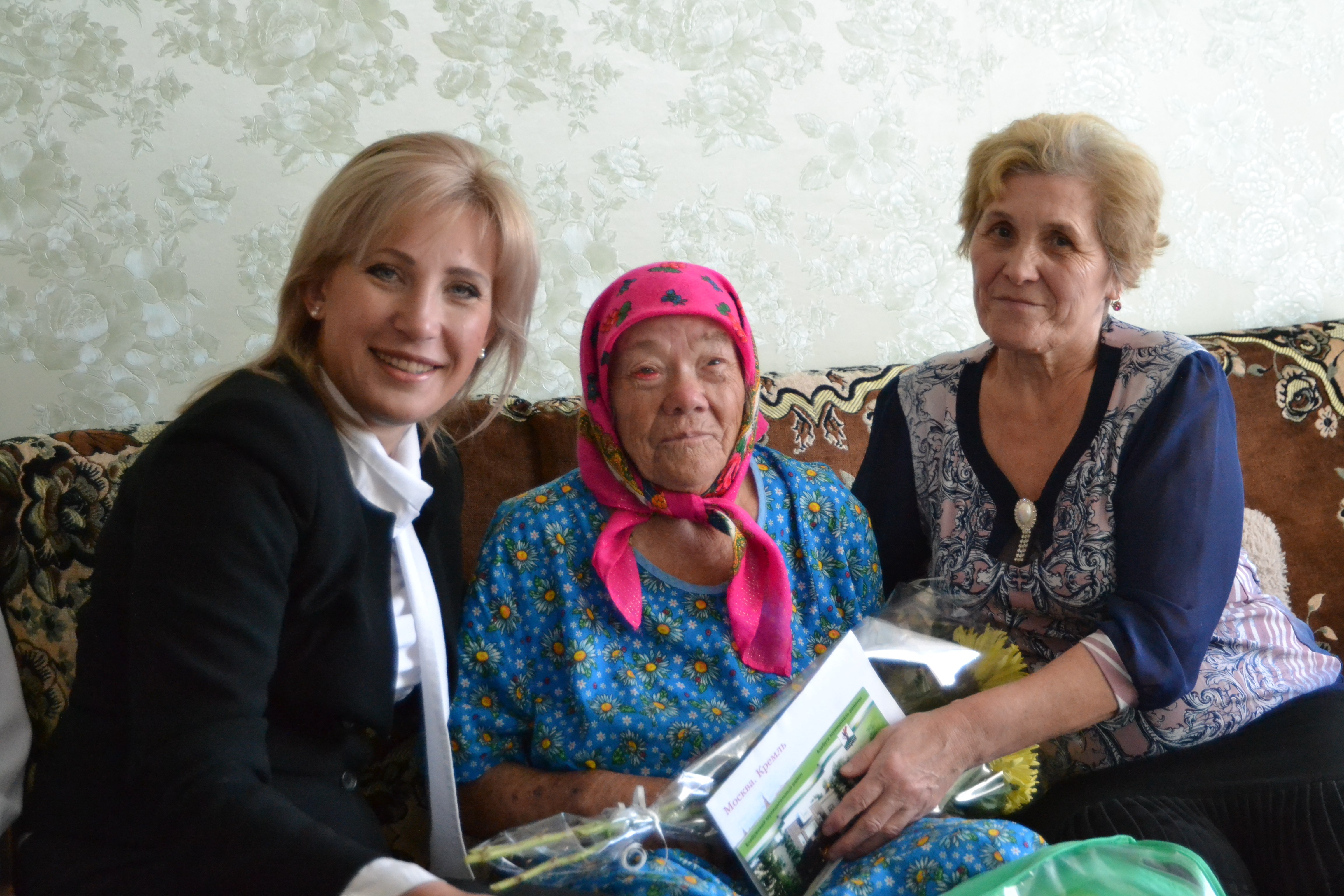 Сегодня 90-й день рождения отмечает труженик тыла Фархинур Минахметовна Минахметова. Само торжество, на который приглашены все близкие именинницы, намечено на вечер, а днем бабушку поздравили заместитель руководителя райисполкома по социальным вопросам Людмила Рыбакова и начальник орготдела Совета ЕМР Гузяль Тазиева. С пожеланиями крепкого здоровья и долголетия они вручили Фархинур Минахметовне поздравительное письмо от Президента России Владимира Путина и подарки от главы Елабужского района Геннадия Емельянова - букет цветов, открытку и теплое одеяло.