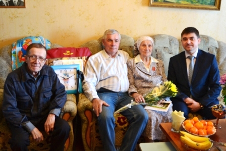 2 марта свой юбилей отпраздновала труженик тыла, ветеран труда Фаузия Зайнутдинова. Поздравить именинницу с 90-летием пришли руководитель исполнительного комитета Елабужского района Роман Исланов и его заместитель по социальным вопросам Людмила Рыбакова. Фаузие Камиловне преподнесли в честь юбилея подарки. Самый главный – это юбилейная медаль «70 лет Победы» и часы с символикой годовщины Победы в Великой Отечественной войне. Кроме того, ей вручили поздравительную открытку, подписанную Президентом России Владимиром Путиным, а также открытку, букет цветов и теплый плед от главы района Геннадия Емельянова.