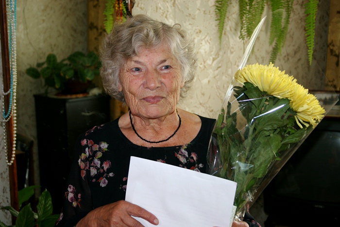 Сегодня она отмечает свой 90-летний юбилей. По традиции поздравить ее пришли заместитель руководителя райисполкома по социальным вопросам Людмила Рыбакова и начальник орготдела Совета ЕМР Гузяль Тазиева.