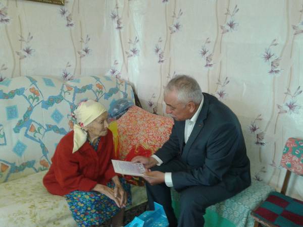 12 июля 2015 года Глава Спасского муниципального района К.А.Нугаев поздравил с 103-летием Палагину А.О. - нашу старейшую труженицу тыла, вручил Анне Осиповне поздравительную открытку от своего имени, а также вручил продуктовый набор, цветы. Так же юбиляршу поздравили – Тюленев М.А. председатель совета ветеранов, Каримуллина Г.Р. - Глава сельского поселения, сотрудники социальной защиты, родные и близкие.