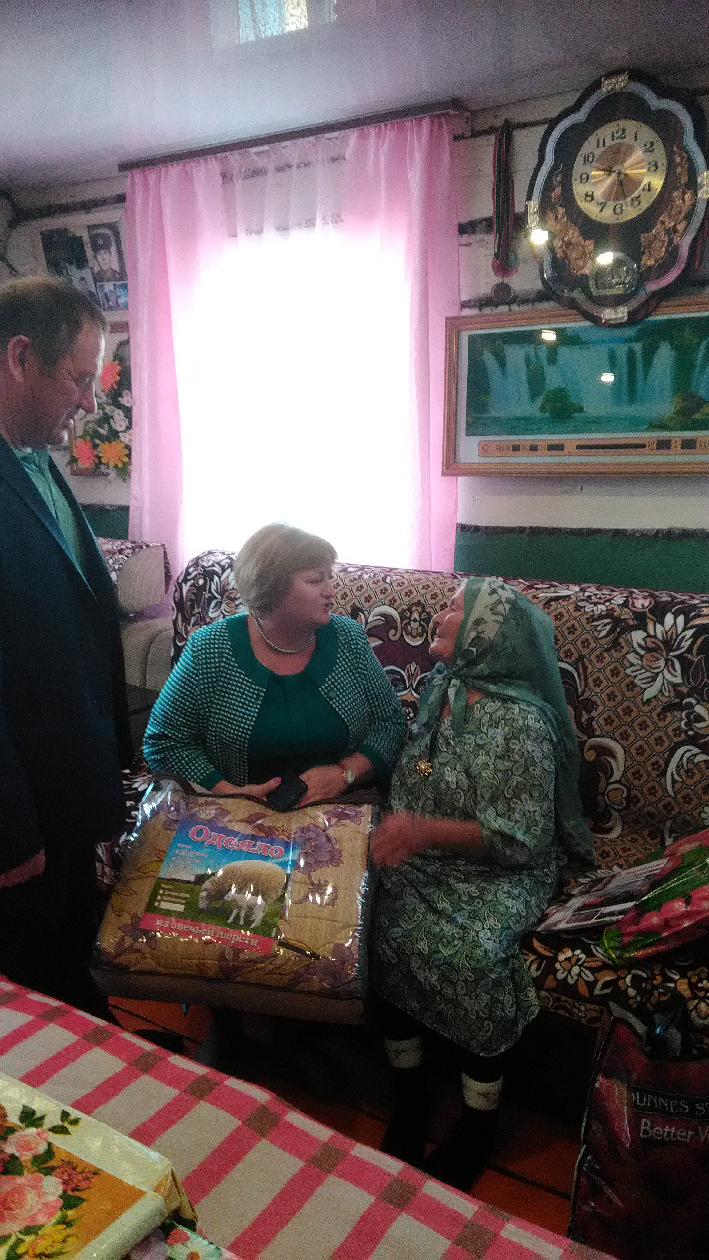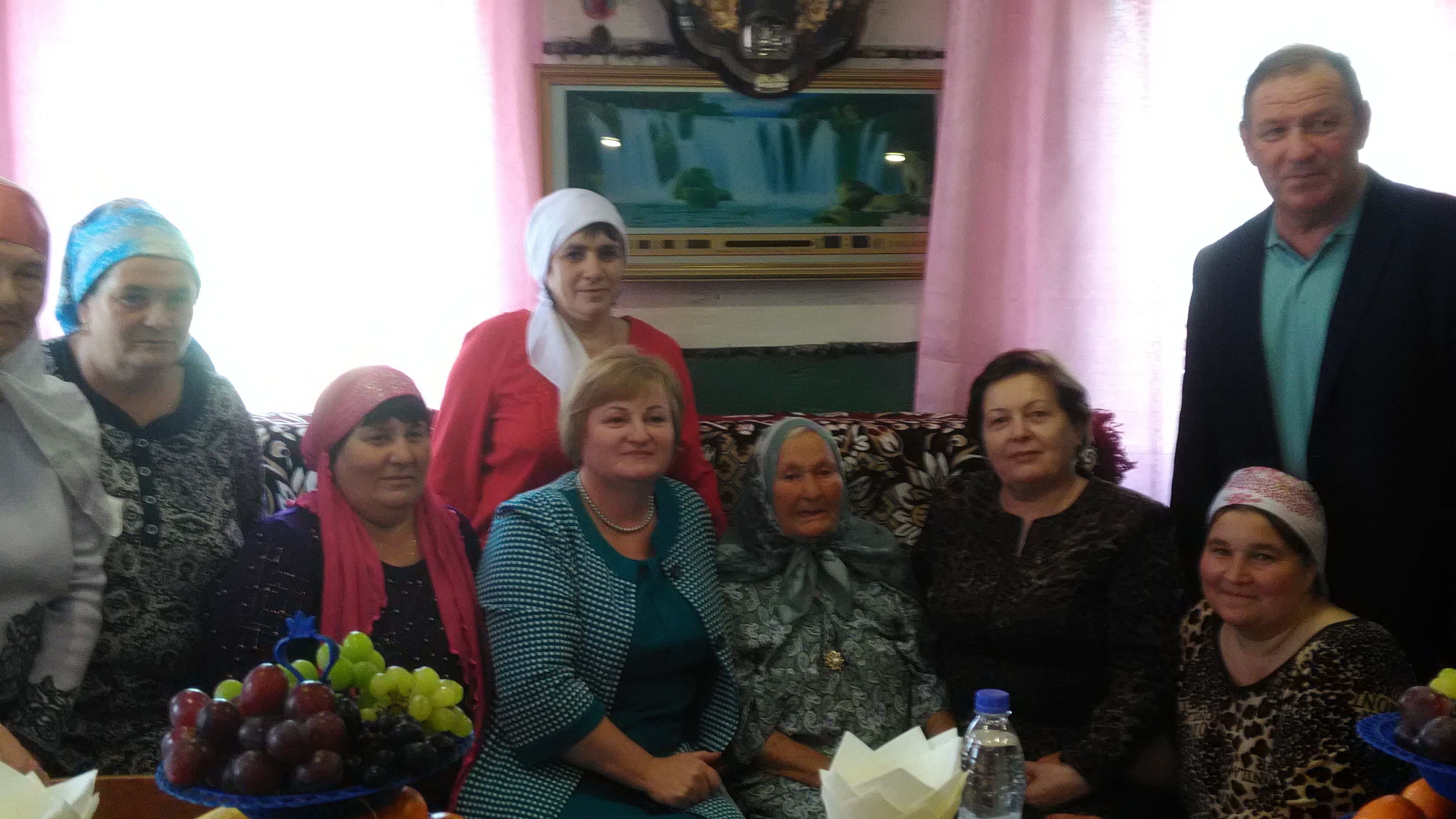 Руководитель контрольно-счетной палаты М.С. Гиматдинов поздравил с 90-летием Гайнуллину Минрую Нургалеевну и вручил поздравительные открытки от Президента РФ В.В. Путина, от Главы Спасского муниципального района К.А. Нугаева, продуктовый набор, цветы. Также юбиляршу поздравили председатель районной организации ветеранов Бурумова Т.Н., глава Аграмаковского сельского поселения Галяутдинова Р.Т., сотрудники социальной защиты, родные и близкие.