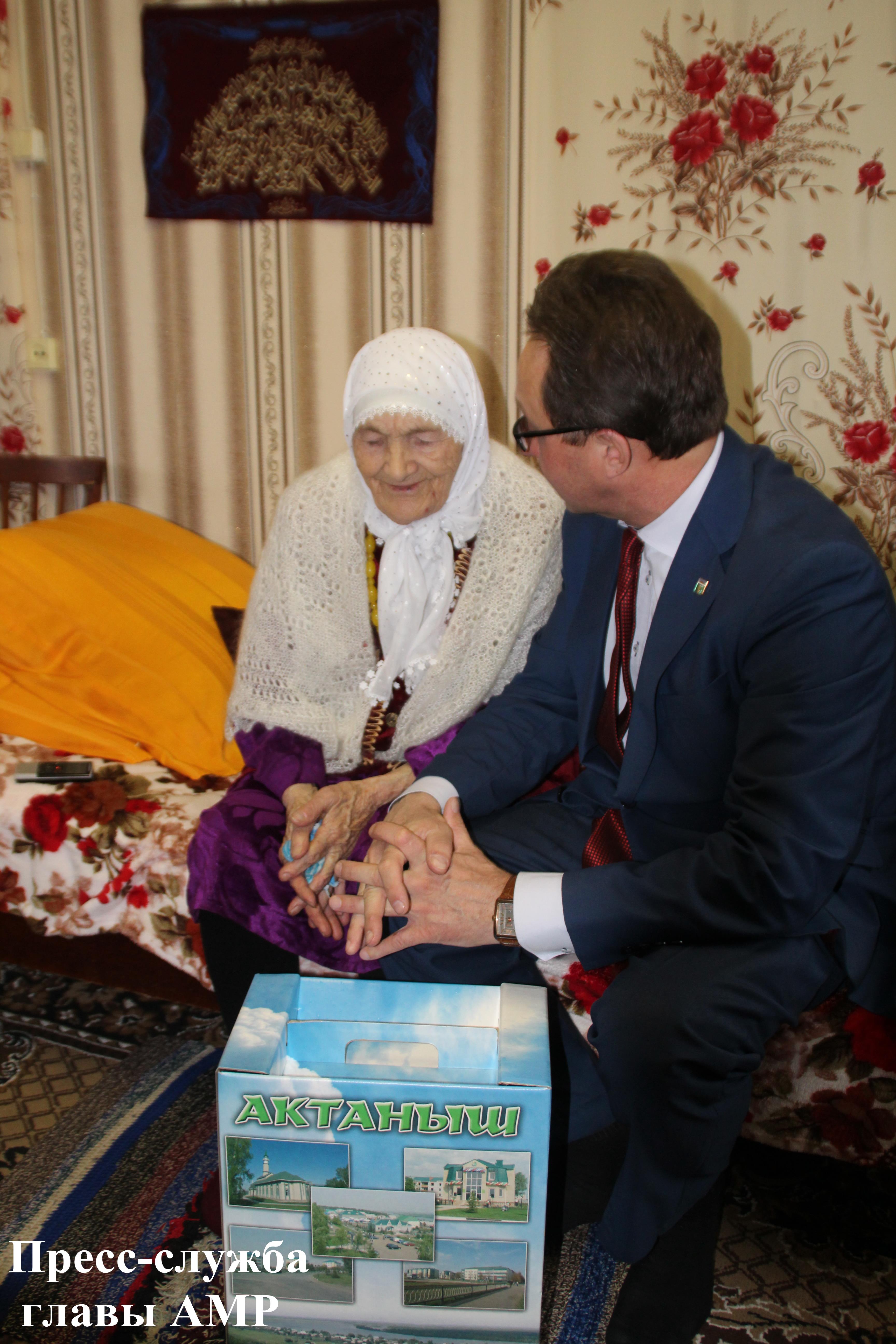 Руководитель Аппарата Совета муниципального района Айдар Хаев побывал у юбиляра. 90-летний юбилей отмечает сегодня житель села Старое Курмашево ветеран тыла Мухамадиева Муфавада Мардисламовна. Айдар Хаев поздравил ее с памятной датой, вручил поздравительную открытку Президента РФ В.В.Путина, подарки от имени Главы муниципального района и выразил добрые пожелания.