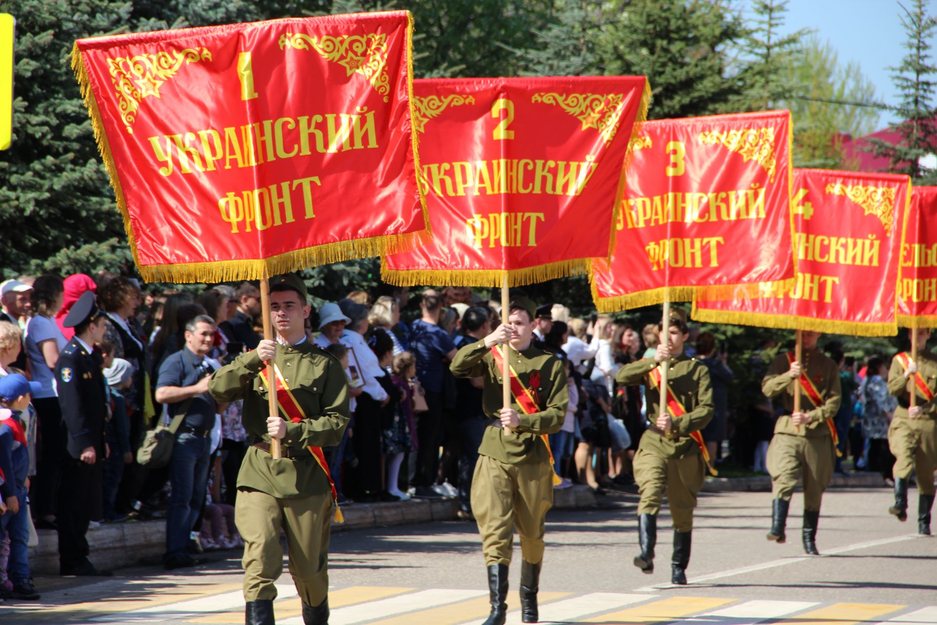 По улице Крупской до памятника «Воину Освободителю» прошло праздничное шествие «Парад Победы».В едином строю со знаменами, на которых указаны фронта Великой Отечественной войны, прошли школьники и студенты. Также были колонны с малыши детских садов, участниками военных конфликтов разных лет, сотрудниками полиции и МЧС. Здесь же проехали: военная техника, ретро автомобили, байкеры.