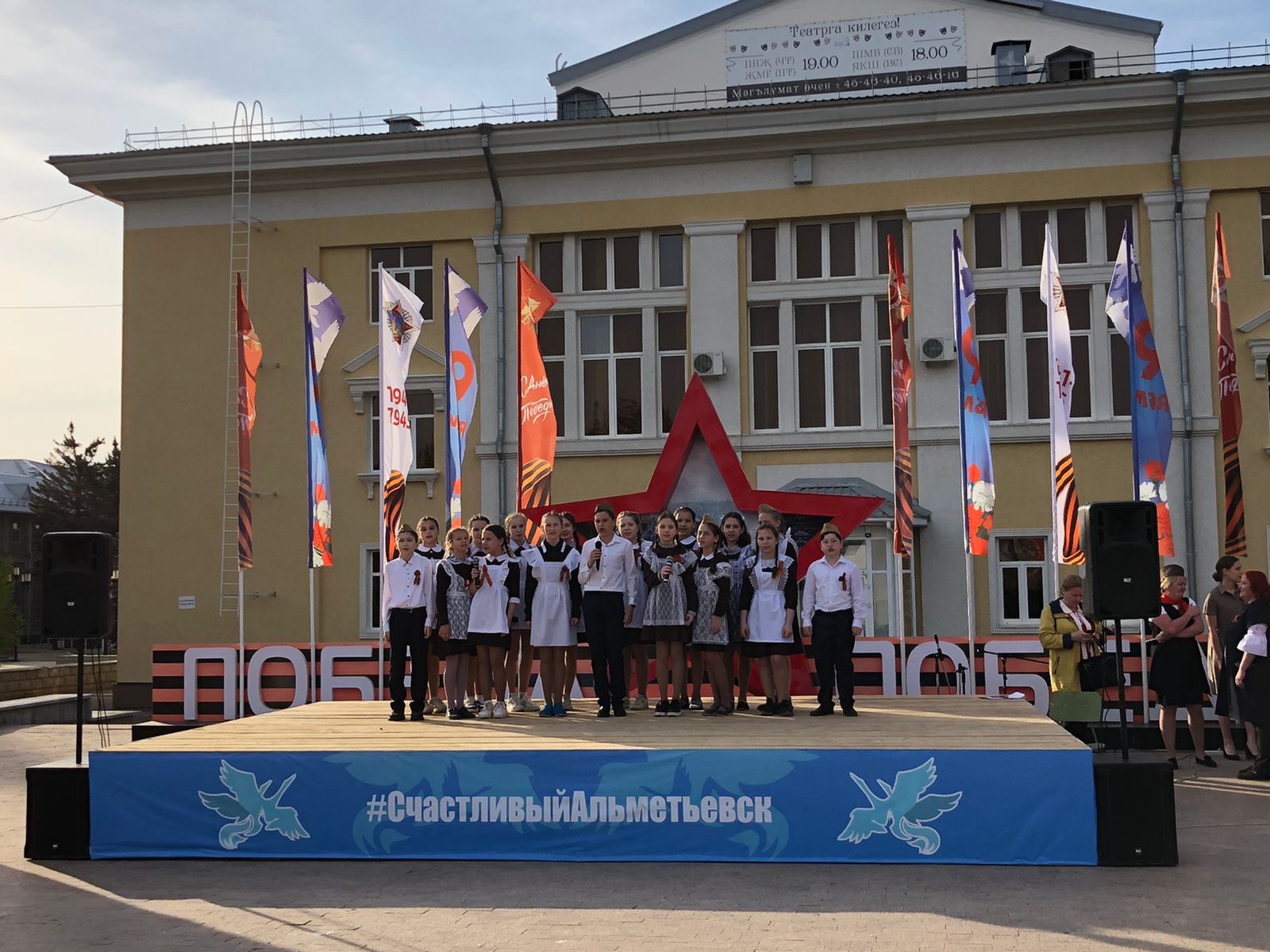 Время постоянно движется вперёд, а позади остаются значимые события как для каждого из нас, так и для народов. Есть такие праздники, о которых нельзя забывать, о них просто необходимо помнить, достойно отмечать и передавать будущим поколениям. Таким событием для МБОУ СОШ № 13 является День Победы в Великой Отечественной Войне. В этом году вся страна отмечает 77– летие Великой Победы. Эта дата наполнена особым смыслом. Это – священная память о погибших на полях сражений. Это – наша история, наша боль, наша надежда… Этому великому событию были посвящены многие праздничные мероприятия, прошедшие в городе 9 мая. И во многих из них приняли участие и наши школьники с 1 по 9 классы. Песни военных лет, песни о России в исполнении классов, а так же чтение стихов в исполнении учеников школы завораживали зрителей, будто перенося их в то страшное, но значимое в истории время. Выступления учеников вызвали бурю эмоций и оставил глубокое впечатление в сердце каждого из зрителей.