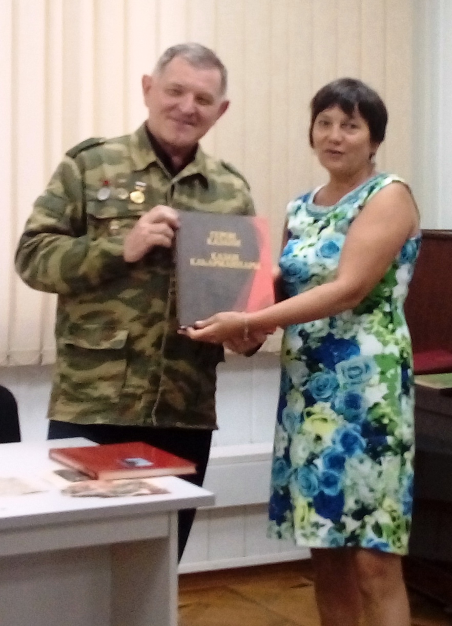 В завершении мероприятия наступило время подарков. Михаил Валерьевич Черепанов подарил свою книгу «Герои Казани» заведующей библиотекой Елене Михайловне Арлановой, главному редактору Книги памяти Московской области Николаю Александровичу Панову, а также библиотеке Татарского национального центра Московской области и библиотеке Татарского культурного центра г.Москвы. Затем Э.Э.Софинов передал библиотеке им. Н.Г.Чернышевского книгу-фотоальбом «Во имя павших и живых» о памятниках и патриотической работе, проводимой на территории Новой Москвы, в работе над которой он принимал активное участие в качестве технического редактора. Михаил Петрович Клюшников от имени депутата Мособлдумы А.Н.Баранова подарил библиотеке историко-краеведческий альманах «Край родной наро-фоминский». В свою очередь заведующая библиотекой Елена Михайловна Арланова в знак благодарности за проведённую презентацию подарила Михаилу Валерьевичу Черепанову богато иллюстрированный альбом о Битве под Москвой.