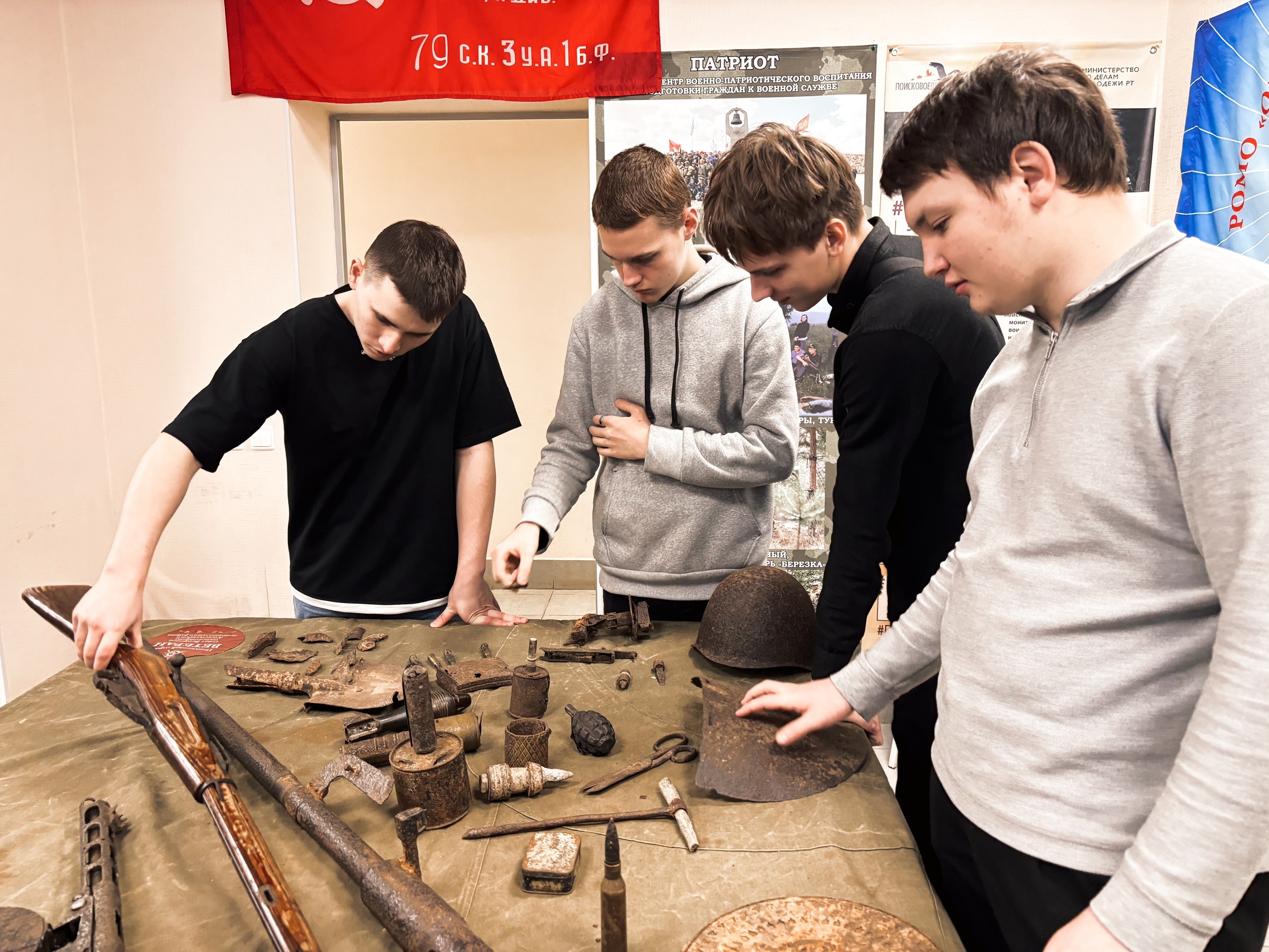 том, как сохраняется память о Великой Отечественной войне. Особое внимание было уделено знакомству с оружием, тактикой и экипировкой, использовавшимися на фронте. Экспонаты центра, включая военное обмундирование и образцы оружия, не только иллюстрировали рассказы экскурсоводов, но и позволяли студентам получить наглядное представление о жизни и быте солдат того времени. Такие экспонаты, как каски, винтовки и макеты гранат, вызвали у участников особый интерес. «Экскурсия способствовала расширению кругозора студентов в области военной истории и воспитанию уважения к подвигам предков», – поделилась администрация сообщества ГБПОУ «Альметьевский профессиональный