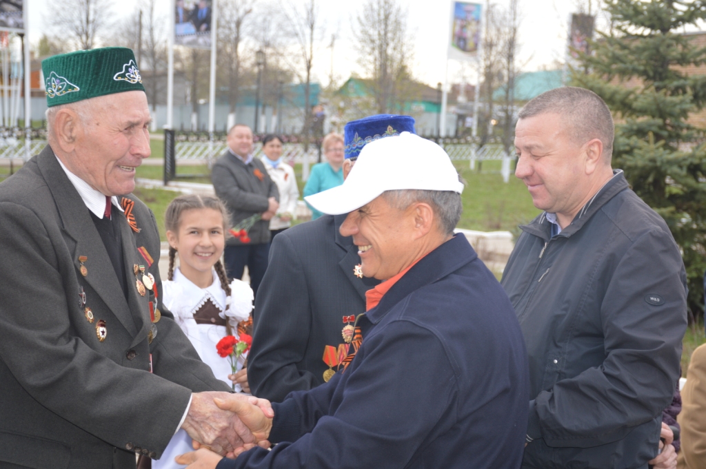 Потом он посетил мемориальный комплекс павшим Героям Войны, где пообщался с ветеранами и возложил цветы к обелиску. Далее он посетил аграрный колледж, ознакомился с рабочими кабинетами, лабораториями. Так же зашел в спортзал агроколледжа, который был построен при его поддержке. Спортсмены приветствовали его бурными аплодисментами. Далее Президент поехал в учебно-производственную базу колледжа, где встретился с руководителями хозяйств и сельских поселений. Он положительно оценил ход посевных работ и пожелал их удачного окончания.