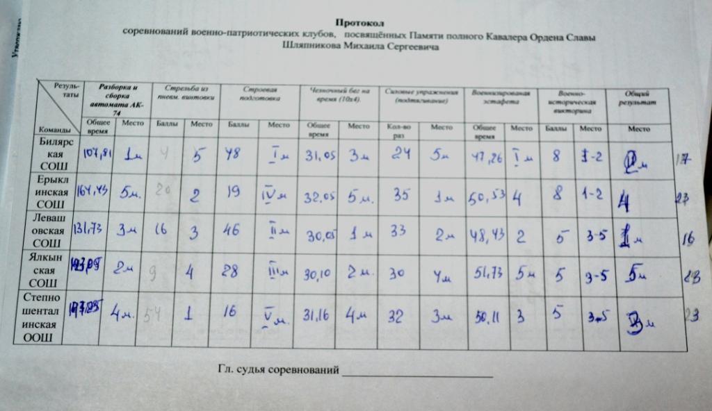 В соревнованиях приняли участие клубы (возраст детей -12-14 лет) из сёл Билярск ("Юнармеец"), Левашево ("Каскад"), Ерыкла ("Юнармеец-2"), Степная Шентала и Ялкино.