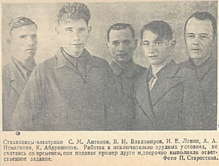 По-военному работают электрики нашего завода. Не так давно бригада под руководством мастера тов. Антонова и бригадира тов. Абдрашитова получила задание провести ремонт кабеля и сменить соединительные муфты. Поврежденный кабель проходил по топкому болоту. Погода также не благоприятствовала работе: шел дождь, а потом пошел снег. Но все трудности не остановили электриков. Они знали, что от выполнения их задания будет зависеть и выполнение плана заводом. Работая под дождем и снегом, по колено в жидкой ледяной грязи, они шаг за шагом обследовали кабель, обнаружили и исправили повреждение, сменили муфты. Работать в таких условиях приходилось по 14-18 часов, а отдельным товарищам даже и по целым суткам.