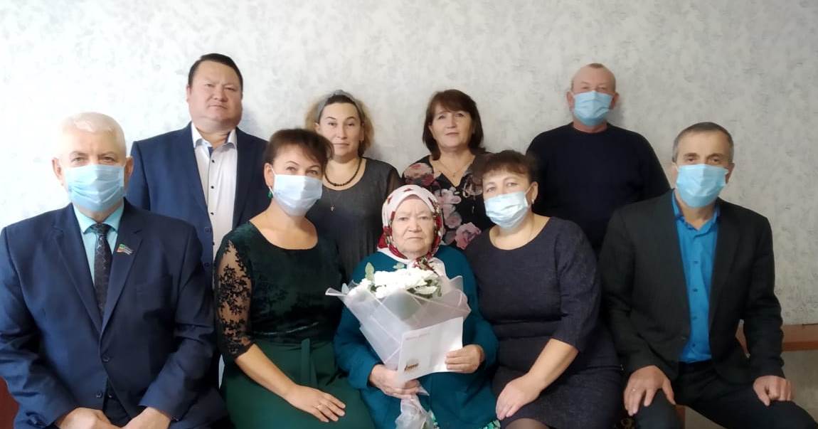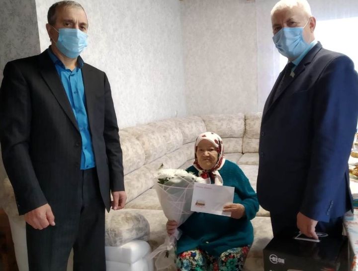 Гости вручили поздравительный адрес от имени Президента РТ и подарок от имени Главы района. Пожелали всего наилучшего, здоровья и бодрости.